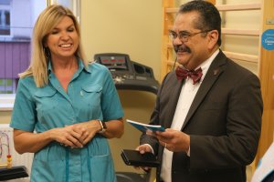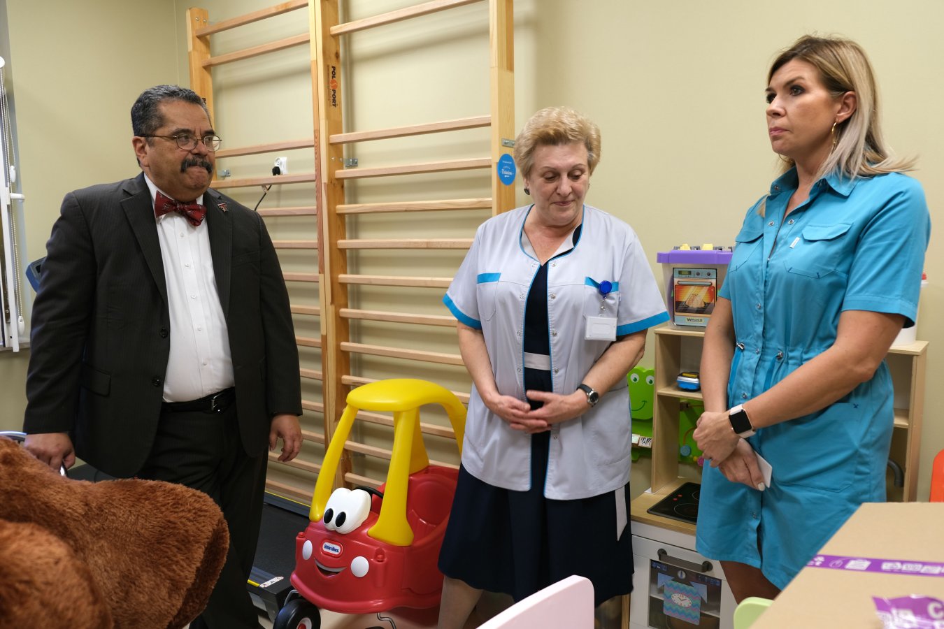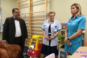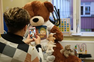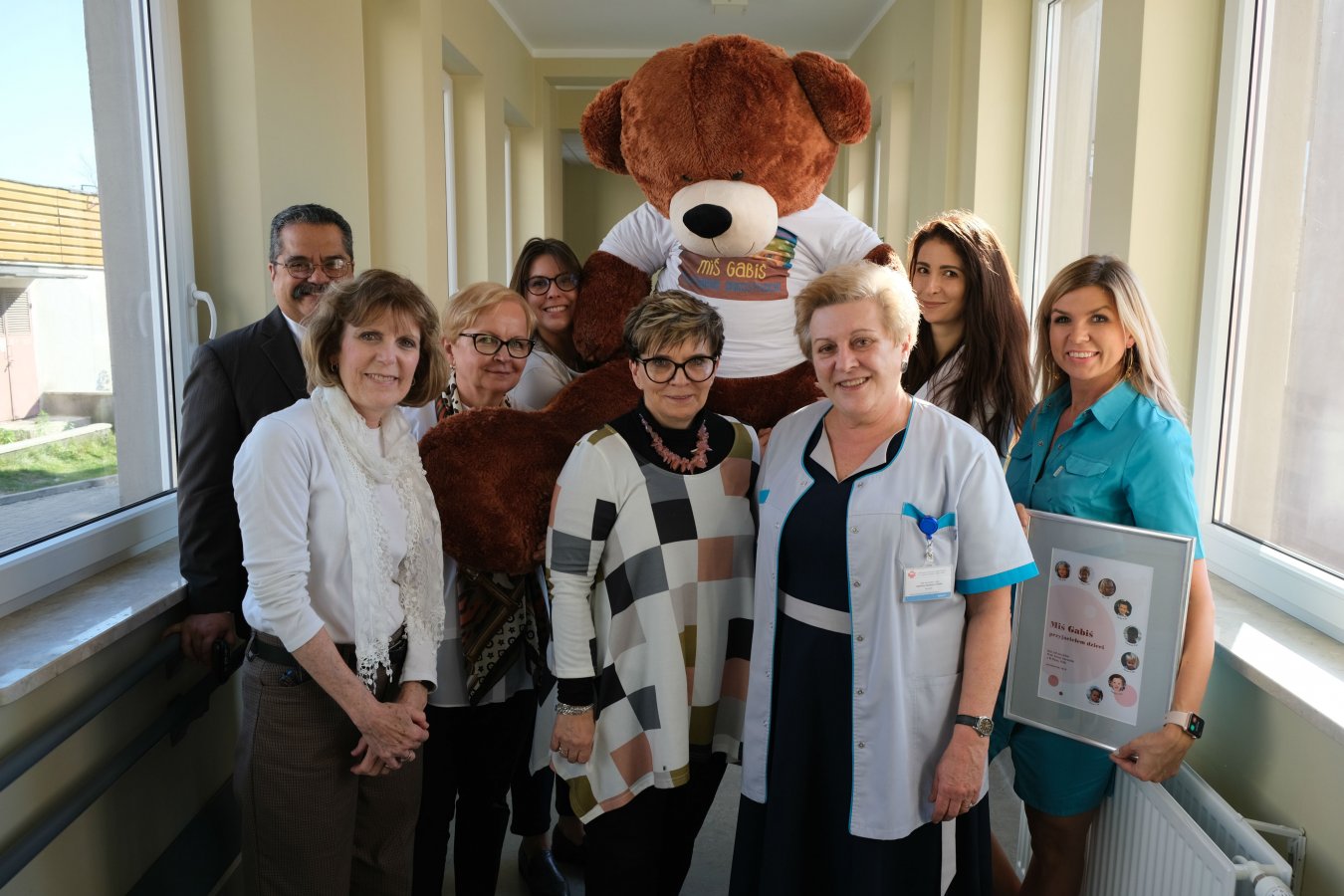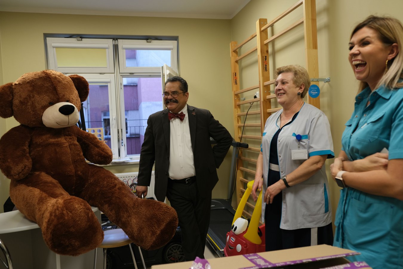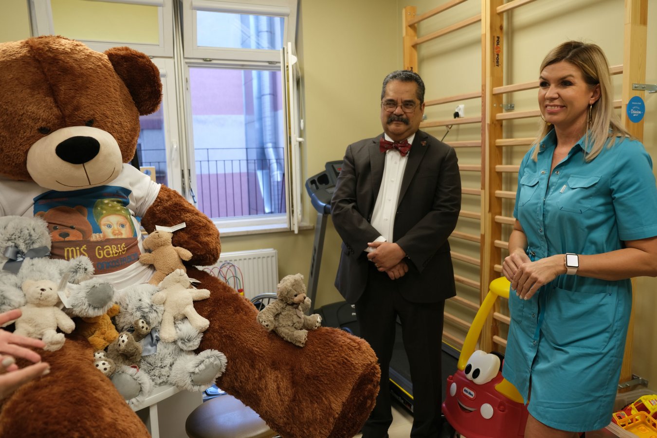 Największego misia do kliniki wnosił dr Jose Manuela De La Rosa M.D. wiceprezydent Texas Tech University. Dzień wcześniej podpisał umowę o współpracy uczelni z Teksasu i UMB. Od razu maskotkom rozdzielono zadania. Ta największa trafiła do świetlicy w poradni onkologicznej, gdzie ma wspierać małych pacjentów. Mniejsze misie trafiły bezpośrednio do chorych dzieci w klinice (zabiorą je do domów).