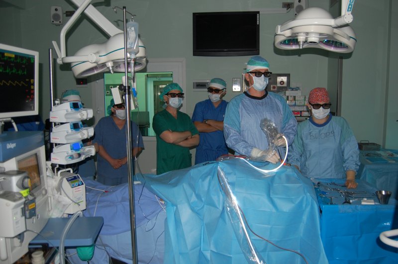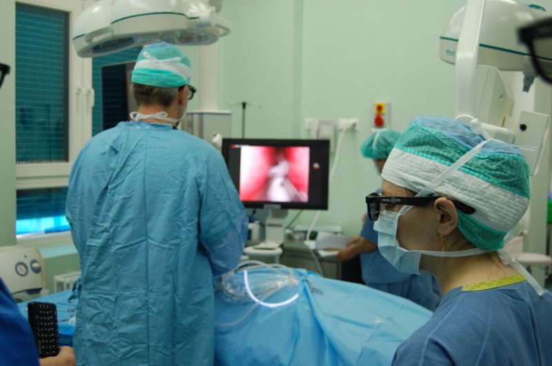 Jak wygląda operacja? Lekarze wprowadzają endoskop do zmienionych chorobowo struktur, a obraz z tego miejsca mają widoczny w dużym powiększeniu na monitorze. Dodatkowo podczas operacji mają nałożone okulary, podobne, jakie nosi się w kinie na seansach 3D. Dzięki temu widzą obraz trójwymiarowo. Operują patrząc nie na pole operacyjne, a na monitor.