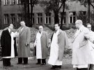 - Po przeniesieniu chorych, spotkaliśmy się w ówczesnym gabinecie dyrektora szpitala dr. Antoniego Tołłoczki (powołany został na to stanowisko podczas budowy). Gabinet mieścił się na pierwszym piętrze, tam gdzie teraz jest Klinika Hematologii - wspomina prof. Puchalski. - Przybyli tam też: prof. Jakub Chlebowski, rektor uczelni, oraz prof. Feliks Oleński, szef Kliniki Chirurgii, a jednocześnie prorektor ds. klinicznych. Były też dwie czy trzy osoby z władz, których nazwisk, ani funkcji nie pamiętam. Dyrektor otworzył butelkę szampana, wypiliśmy po lampce. I rozeszliśmy się do pracy.