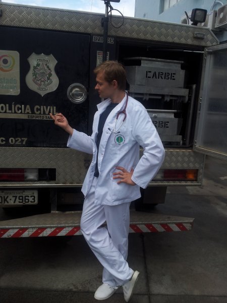 My wybraliśmy się w jeden z weekendów do małej górskiej miejscowości Laranjeiras de Pancas, w której mieszkają Pomeranie, mniejszość z północnych Niemiec, osiedlona tam w XIX wieku. Wysokość nad poziomem morza, narażenie na promieniowanie słoneczne (są to tereny wiejskie, dominuje praca w polu) w połączeniu z jasną karnacją daje bardzo dużą liczbę zmian skórnych. Przyjazd lekarzy był ważnym wydarzeniem, długo oczekiwanym, toteż ludzie ustawiali się cały dzień w kolejkach, aby zostać przyjętym. Wszystko to odbywało się w małej szkole podstawowej, w jednej z sal lekcyjnych, gdzie na prowizorycznie zaaranżowanych łóżkach, z oświetleniem w postaci prostej żarówki, odbywały się różne zabiegi usuwania zmian skórnych. W Europie, czy w Polsce takie rzeczy wydają się być niemożliwe, w Brazylii to comiesięczny, standardowy wyjazd.