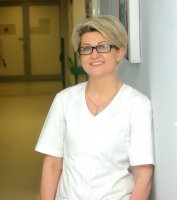 Na pierwszy rzut oka sprawia wrażenie pryncypialnej profesjonalistki, zamkniętej w sobie. Przy bliższym poznaniu dusza człowiek, oddana pacjentom i swojemu zespołowi. Nieprzypadkowo obok jej wizytówki przy drzwiach wisi wydziergany anioł w okularach.