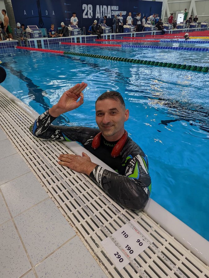 Z tym, że tutaj z tą rywalizacją jest trochę inaczej. W normalnych dyscyplinach, często słyszymy, że ktoś dał z siebie 110 procent. We freedivingu nie można dać z siebie nawet 101 procent. Dlatego, że jeżeli przekroczymy tą cienką barierę, to się to kończy utratą przytomności i czerwoną kartką. Nieważne, jak daleko popłynęliśmy, jak głęboko byliśmy, czy jak długo wstrzymaliśmy oddech - to jest czerwona kartka, dyskwalifikacja, a nasz wynik nie jest uwzględniany. Trzeba dokładnie wiedzieć, gdzie jest limit naszych możliwości, bo nie możemy go przekroczyć. Natomiast to, co dla mnie najważniejsze w tym sporcie, to pokonywanie własnych barier. Moją motywacją jest to, żeby się poprawiać. Cały czas, po trochu, przesuwać swoje rekordy życiowe. Udowadniać sobie, że moje ciało może jeszcze więcej niż kiedyś myślałem, że może.