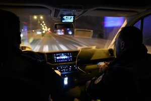 Dziennikarze słyszą warkot silników maszyny, ale nie widzą jej świateł.