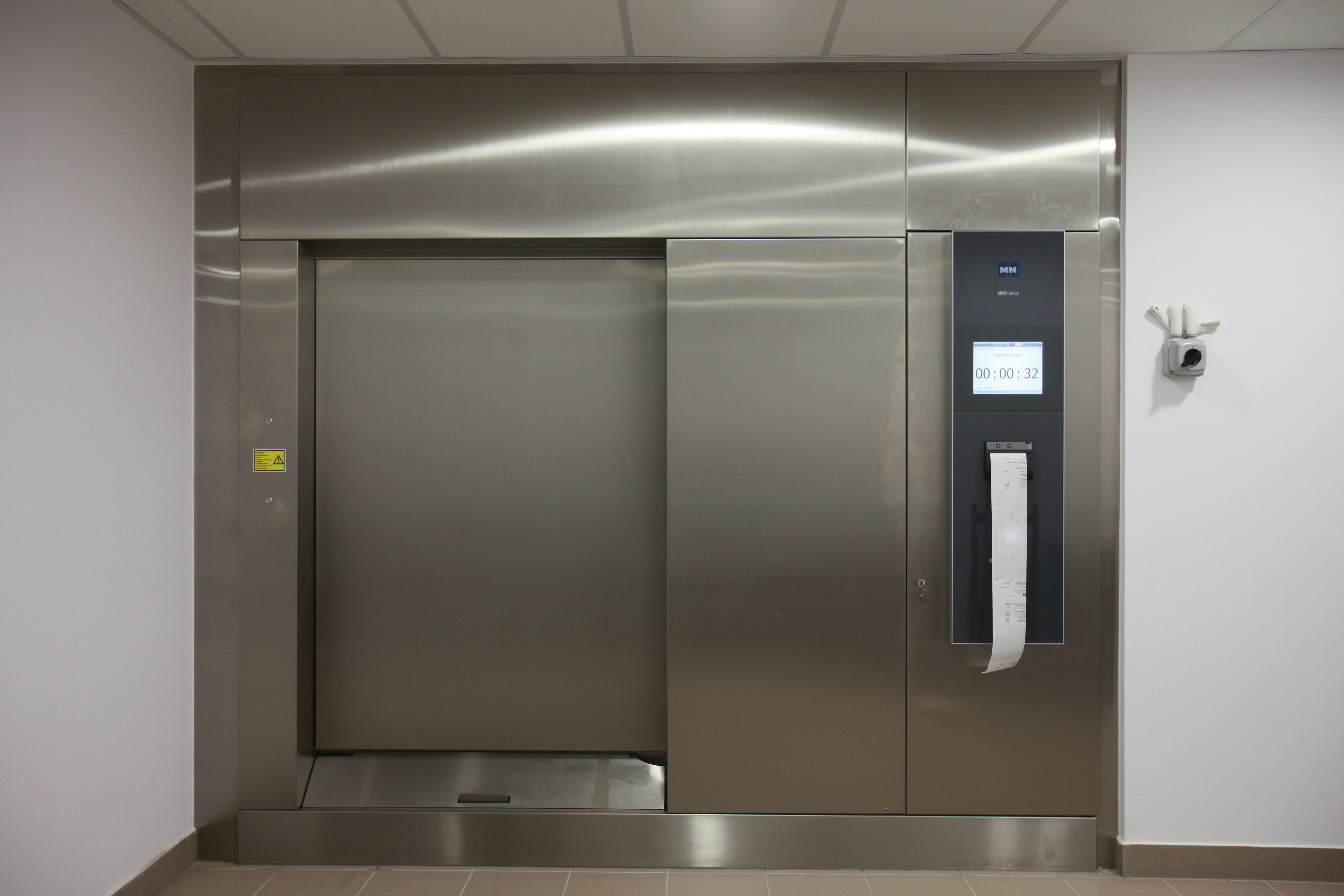 parowa komora dezynfekcyjna. Tu w temperaturze 105°C dezynfekowane są materace, kołdry, poduszki czy bielizna pościelowa. Duże rozmiary komory umożliwiają jednocześnie na załadunek 10 materacy lub np. 40 koców.