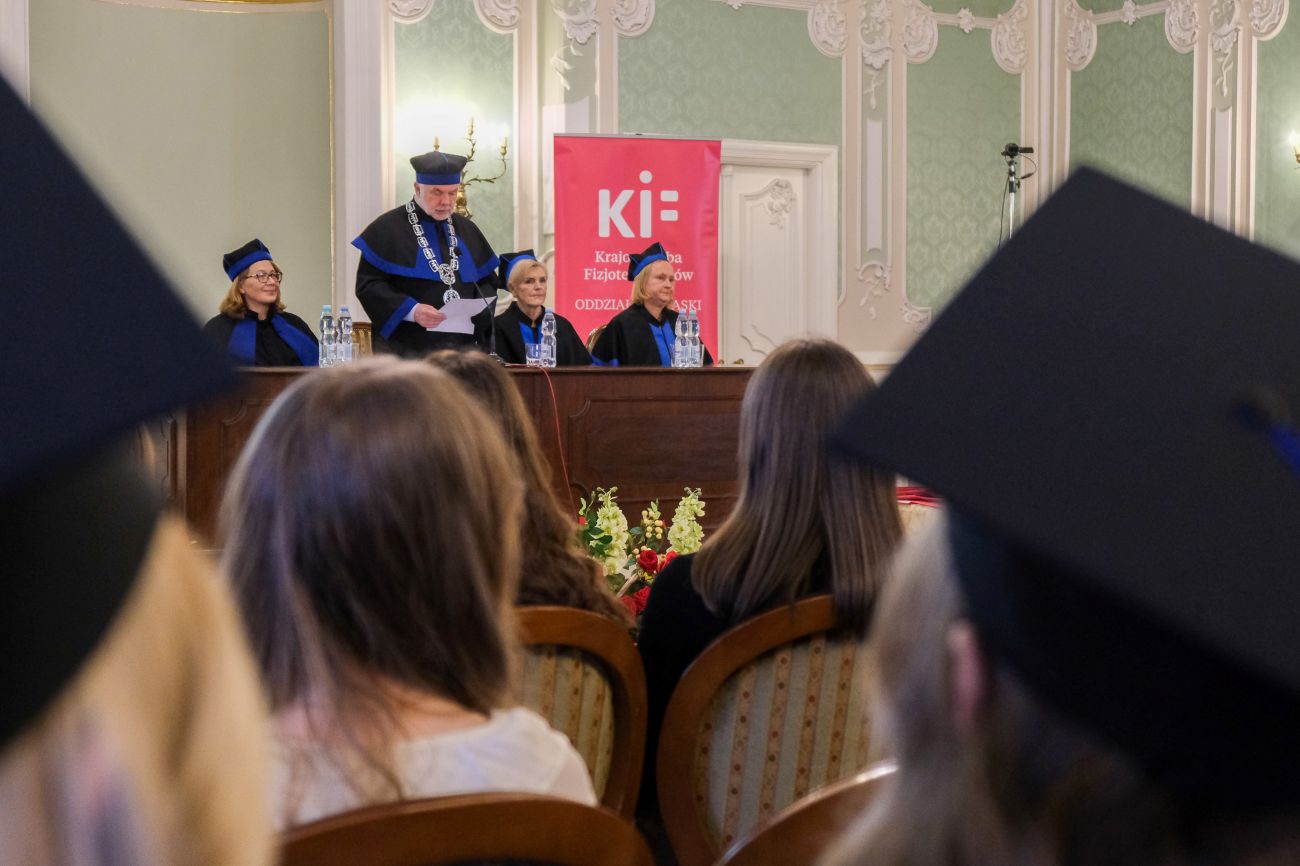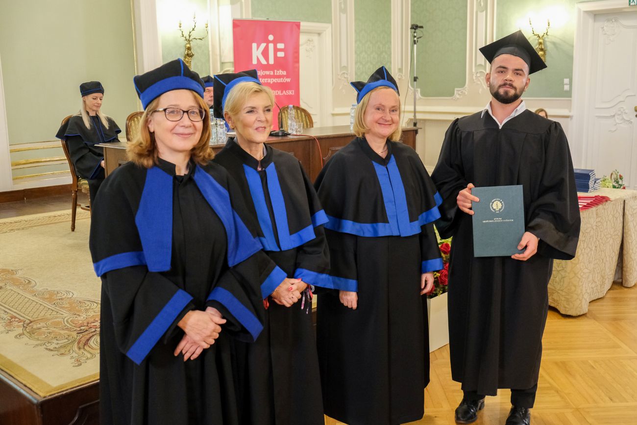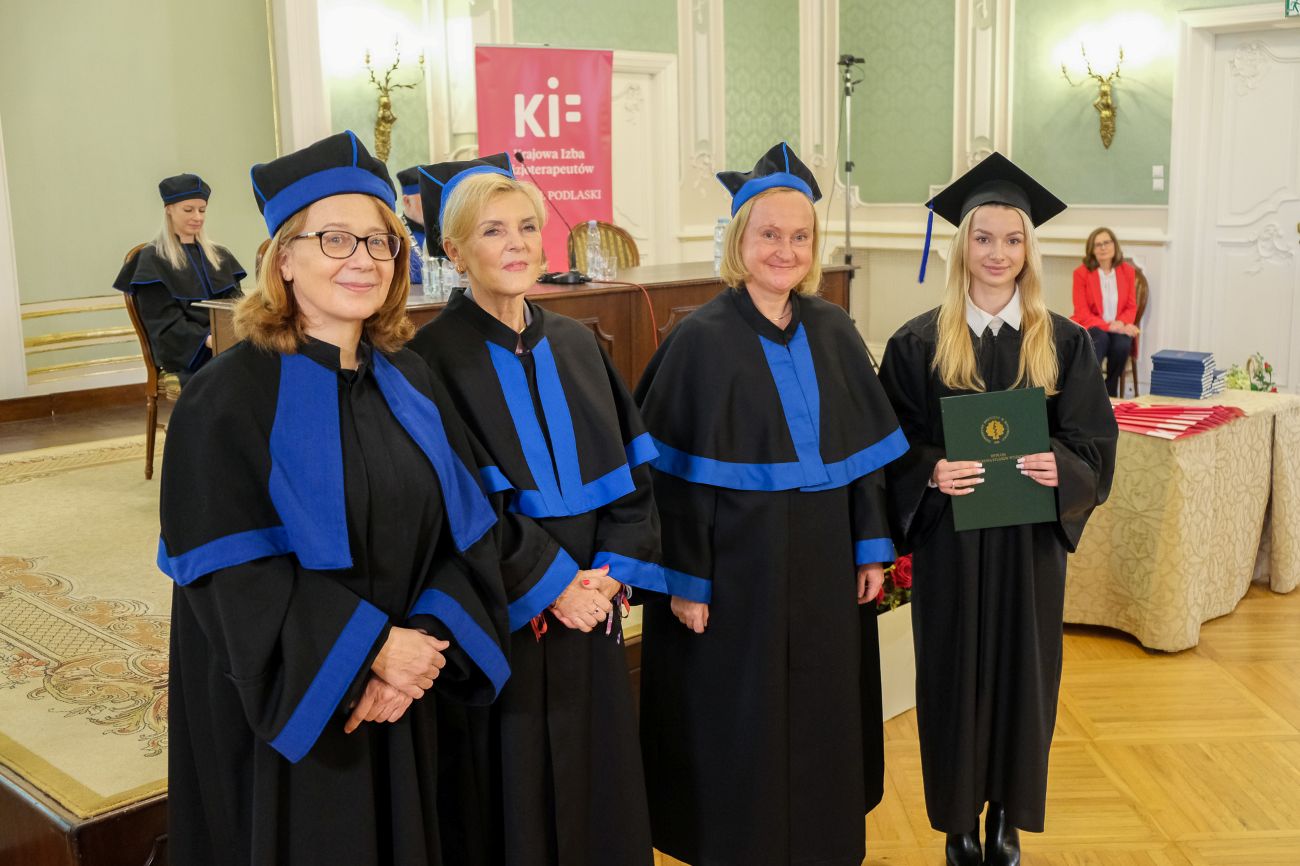 Uroczystość odbyła się we wtorek w Aula Magna Pałacu Branickich. Uczestniczyli w niej m.in. dr hab. Maciej Krawczyk - Konsultant Krajowy w dziedzinie fizjoterapii, Maciej Bogdan - Koordynator Wojewódzkiego Oddziału Terenowego Biura Krajowej Izby Fizjoterapeutów, a także władze UMB w osobach Rektora prof. Marcina Moniuszki i Prorektorów prof. Iriny Kowalskiej i prof. Janusza Dzięcioła. Wydarzenie zakończyło tegoroczne dyplomatoria na naszej Uczelni.