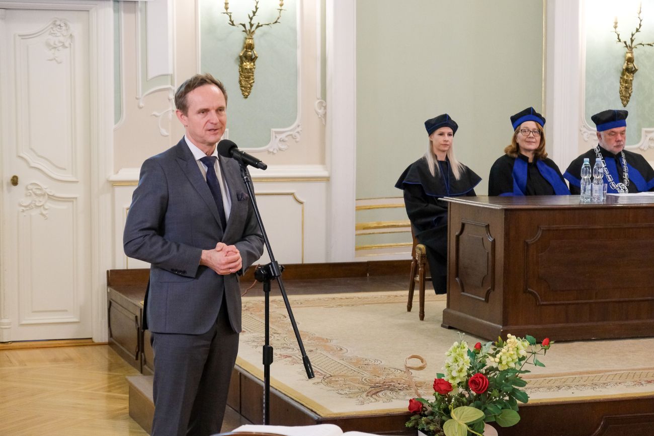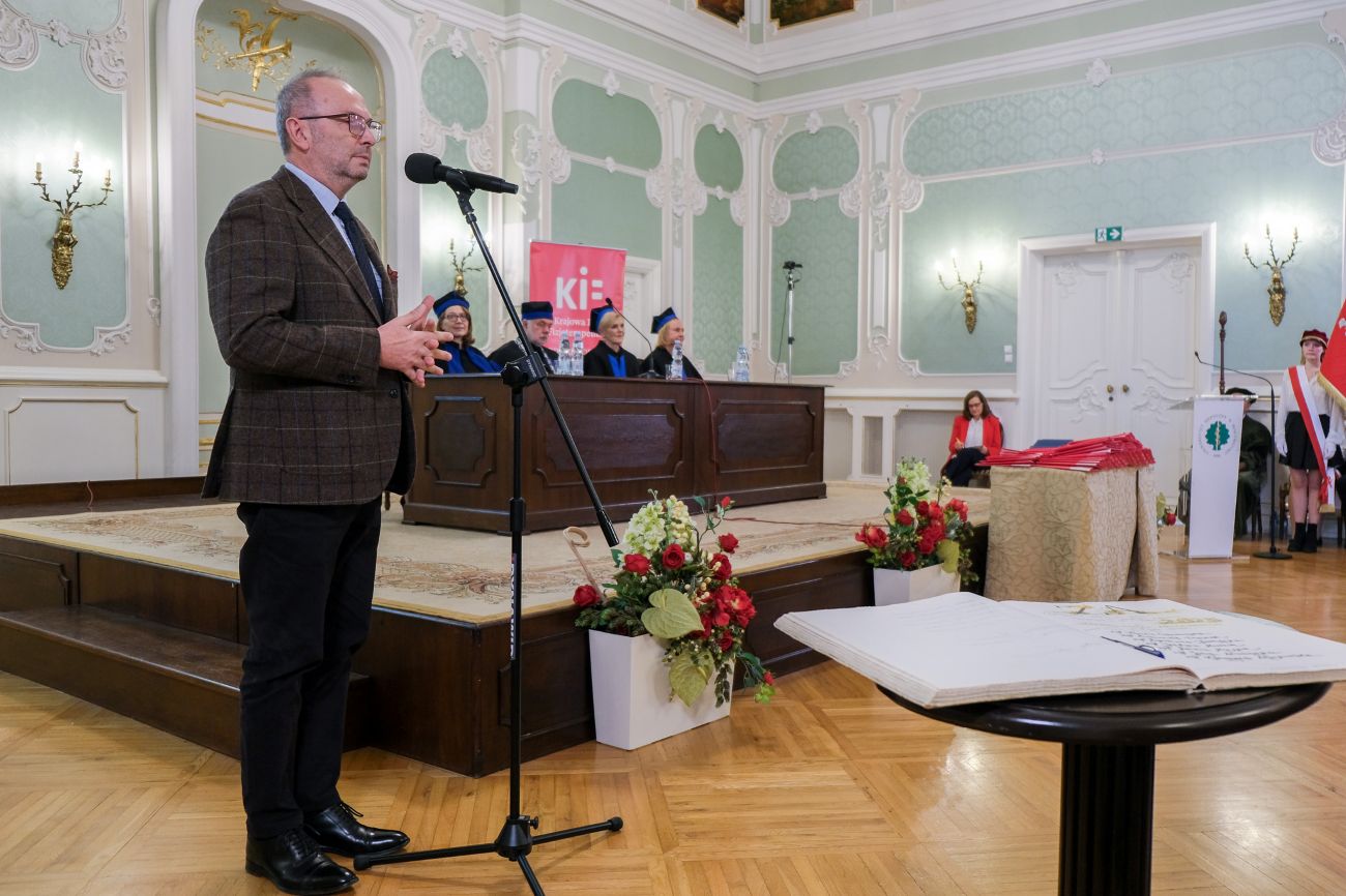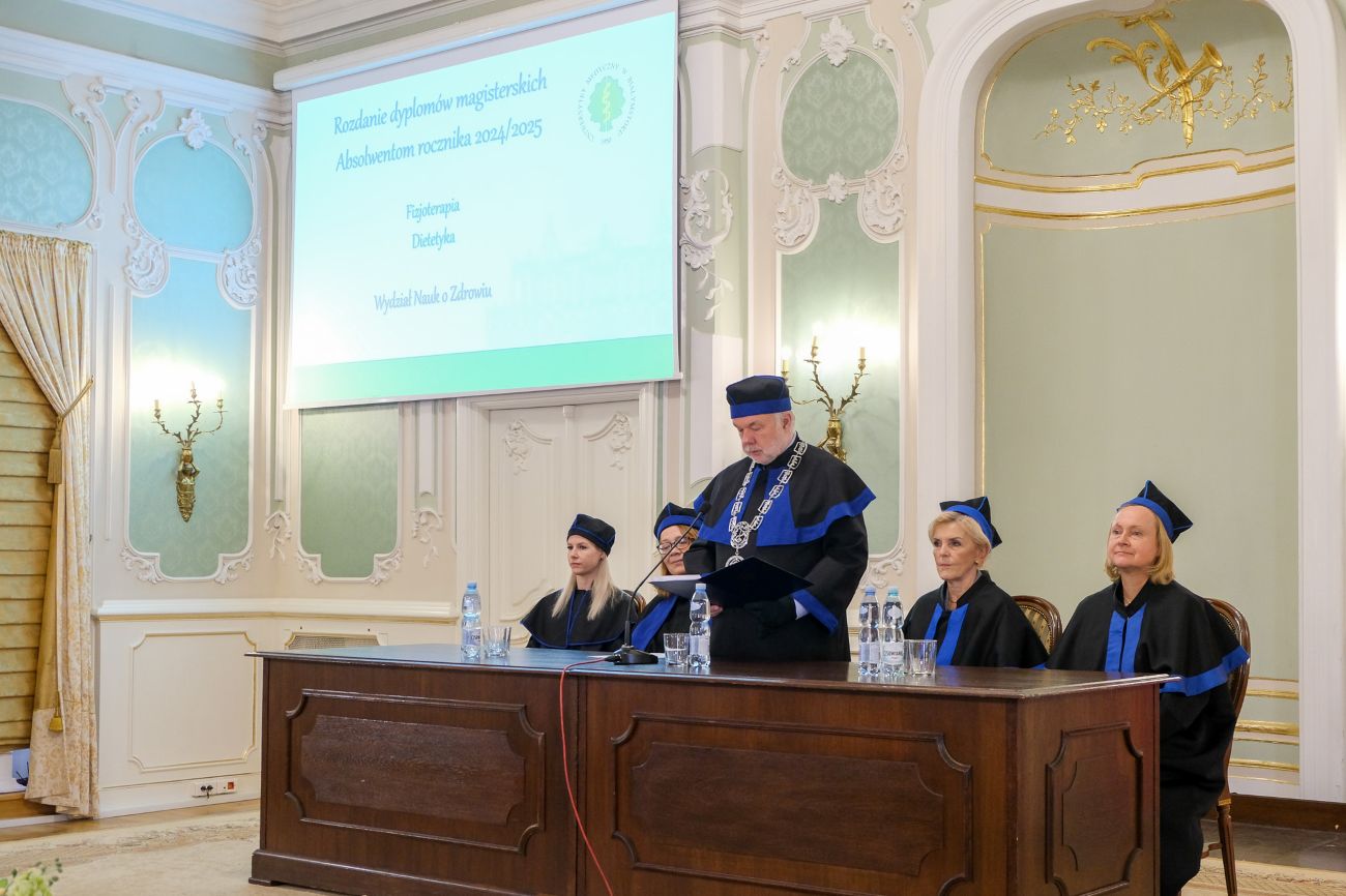 Dziś symbolicznie zamykacie pewien etap swojej drogi i wkraczacie w świat zawodowy, niosąc ze sobą wiedzę, doświadczenie i pasję, którą zdobyliście w murach naszej Uczelni – powiedział do zebranych prof. Sławomir Terlikowski, Dziekan Wydziału Nauk o Zdrowiu. Wybraliście zawody niezwykle wymagające, głęboko humanistyczne, w których centrum znajduje się człowiek, jego zdrowie, godność i dobrostan. Wasza codzienna praca będzie się opierać na empatii, wiedzy i trosce o drugiego człowieka. Wymaga to nie tylko profesjonalizmu, ale też cierpliwości i serca.