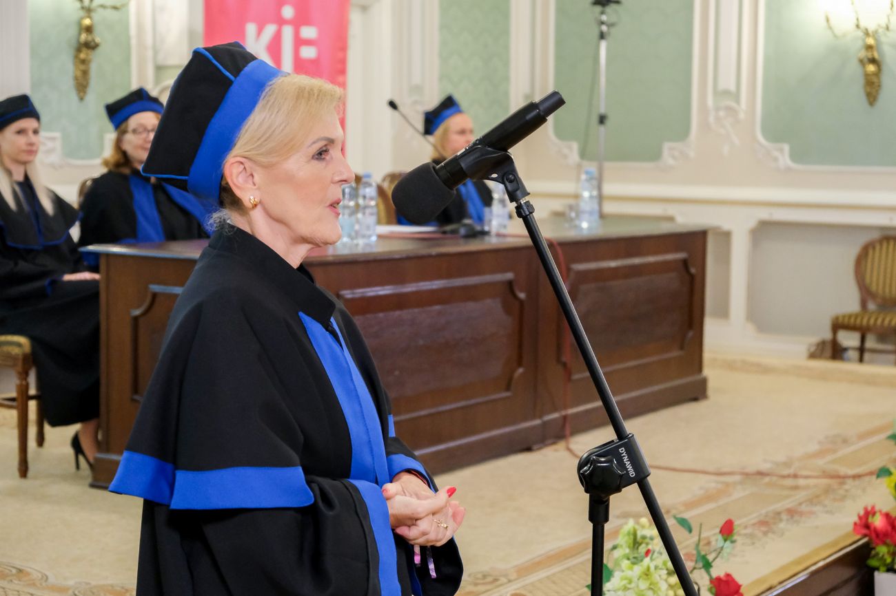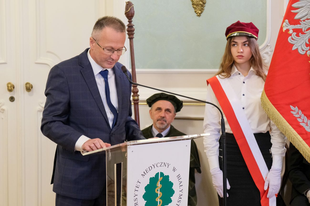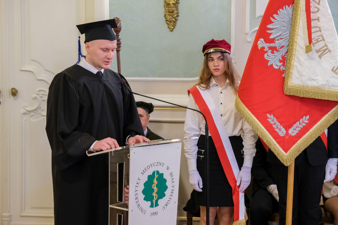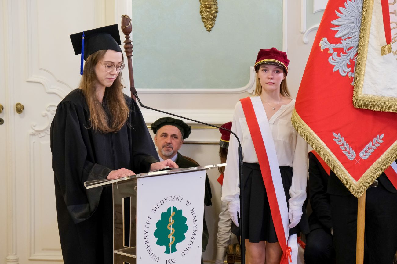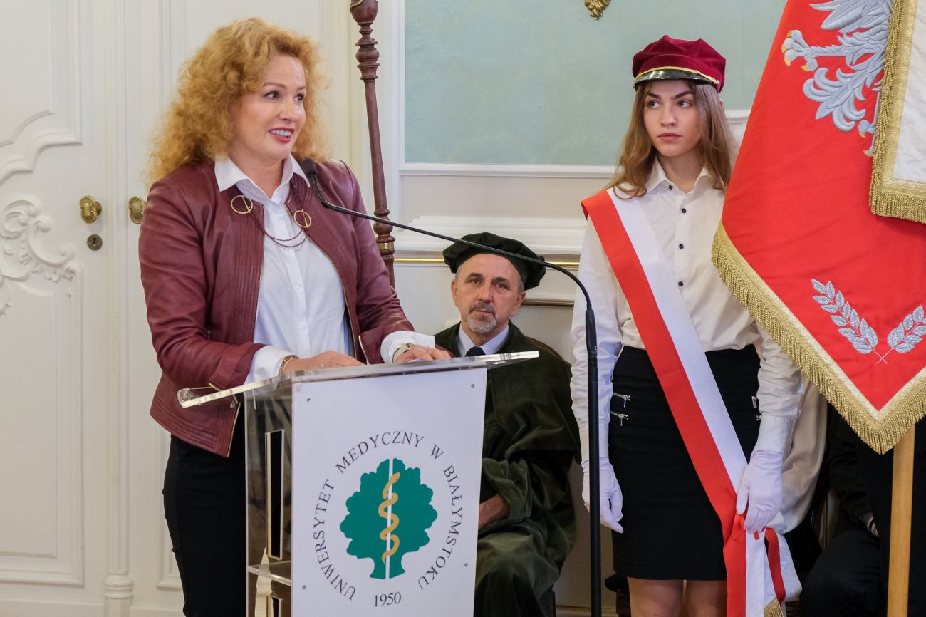 Słowo w stronę absolwentów dietetyki skierowała prof. Lucyna Ostrowska - Kierownik Zakładu Dietetyki i Żywienia Klinicznego UMB oraz koordynatorka kierunku: W tej chwili dietetyka, a zwłaszcza dietetyka spersonalizowana, jest jednym z najsilniejszych czynników terapeutycznych naszego pacjenta (…). Absolwenci dzisiaj kończący Uczelnię otrzymali bardzo kompletną wiedzę medyczną. Potrafią pracować w zespołach terapeutycznych, współpracować z lekarzem, z fizjoterapeutą, z psychologiem, z chirurgiem. Zostali przygotowani do tego, żeby stać przy łóżku pacjenta, nawet tego najtrudniejszego. Kiedy już leki zawodzą, oni jeszcze potrafią poprawiać jego życie.