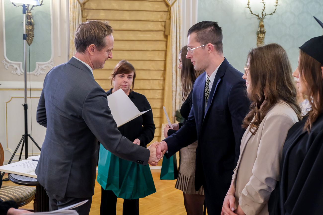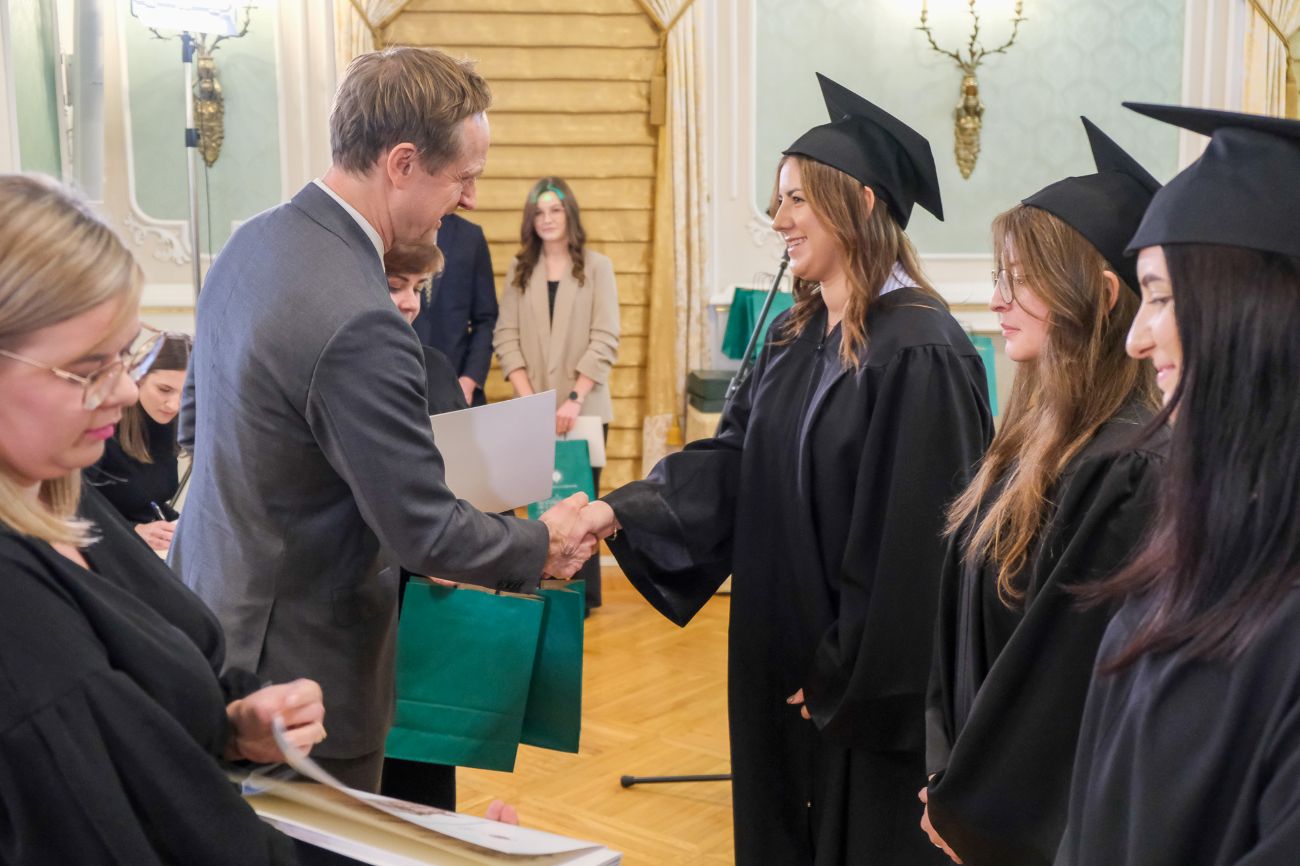 Nim rozdano dyplomy, specjalne wyróżnienia – Honorowy Dyplom Rektora UMB – odebrali absolwenci różnych kierunków z WNoZ, których średnia z całych studiów osiągnęła co najmniej 4,75. Jednocześnie ich nazwiska zostały wpisane do Złotej Księgi Absolwentów Wydziału Nauk o Zdrowiu.