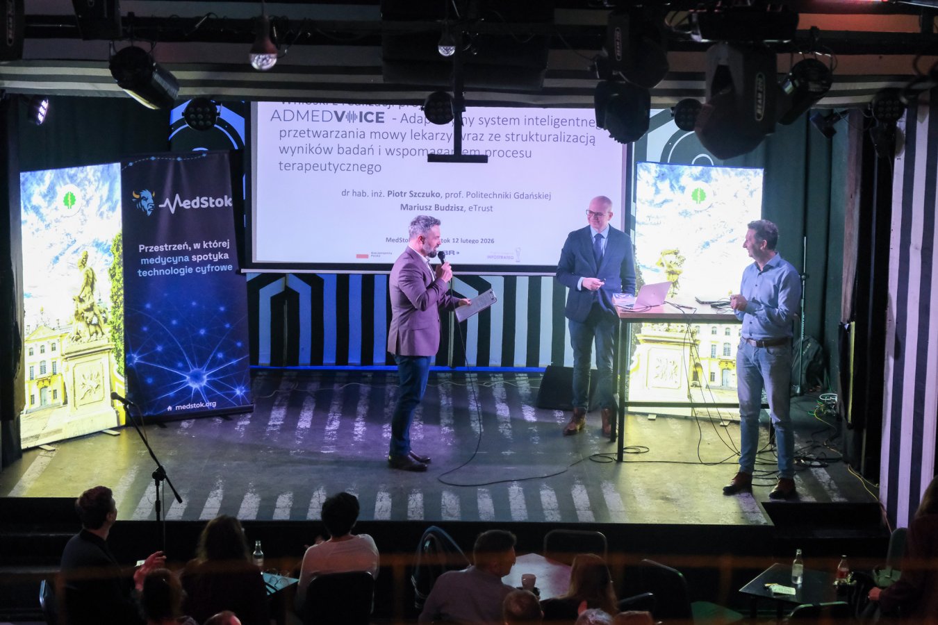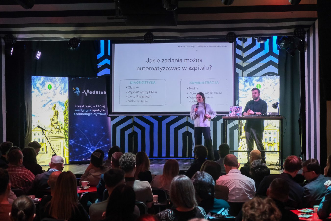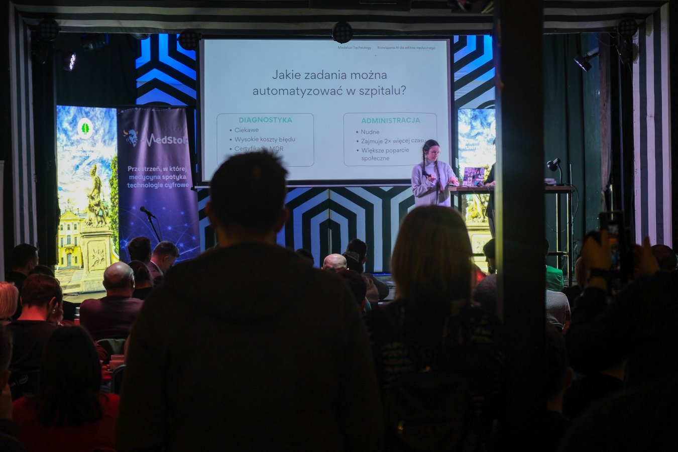 Na scenie pokazano dwie prezentacje. Pierwsza pt. Szpital Przyszłości: AI jako wsparcie dla lekarzy (Barbara Klaudel, Aleksander Obuchowski, oboje z firmy Medalion Technology); druga - ADMEDVOICE: adaptacyjny system inteligentnego przetwarzania mowy lekarzy wraz ze strukturalizacją informacji (Mariusz Budzisz, Uniwersyteckie Centrum Kliniczne w Gdańsku oraz Piotr Szczuko z Politechniki Gdańskiej). W obu przypadkach chodziło o odciążenie lekarzy w powtarzalnej pracy administracyjnej. A wszystko dlatego, że ponad połowa czasu, którą medyk przeznacza na przyjęcie pacjenta, to praca związana z wypełnianiem dokumentów. To zwykle powtarzalne zadania, niezbyt skomplikowane, ale czasochłonne.
