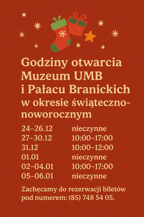 Godziny otwarcia Muzeum UMB i Pałacu Branickich w okresie świąteczno-noworocznym: