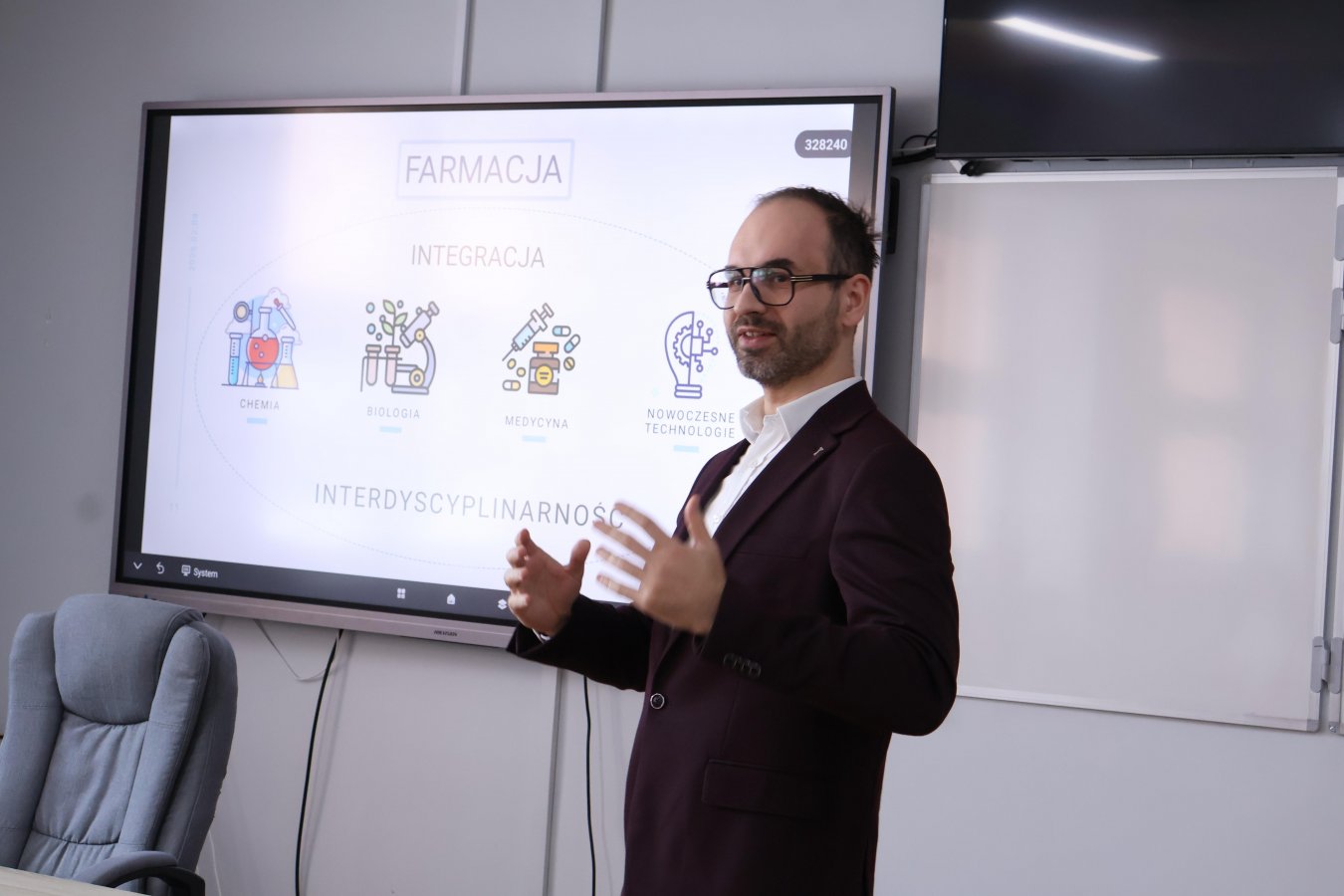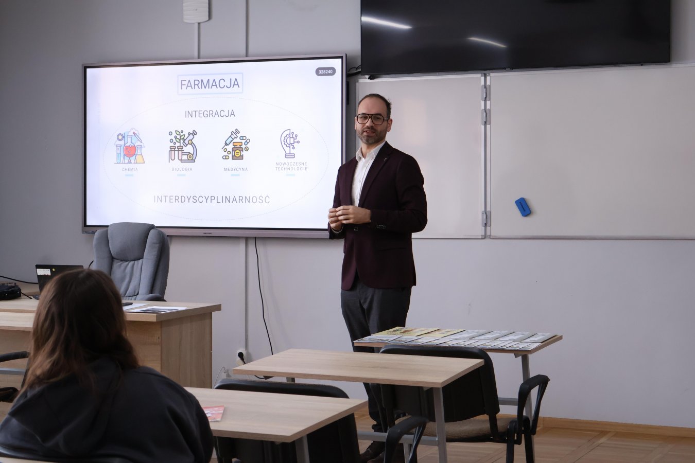 Podczas wizyty uczniowie i uczennice mieli okazję poznać ofertę edukacyjną Wydziału Farmaceutycznego. O poszczególnych kierunkach studiów, w tym m.in. dostępnych specjalizacjach, możliwych ścieżkach kariery, wymaganiach i trudnościach związanych ze studiowaniem oraz możliwościach rozwoju zawodowego opowiedzieli: