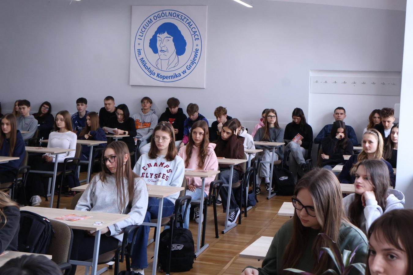 Dn. 9 lutego 2026 r. przedstawiciele Wydziału Farmaceutycznego z Oddziałem Medycyny Laboratoryjnej Uniwersytetu Medycznego w Białymstoku wraz ze studentami oraz pracownicą Biura Promocji i Rekrutacji odwiedzili I Liceum Ogólnokształcące im. M. Kopernika w Grajewie.