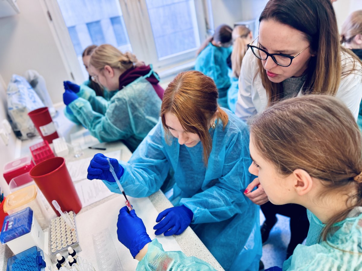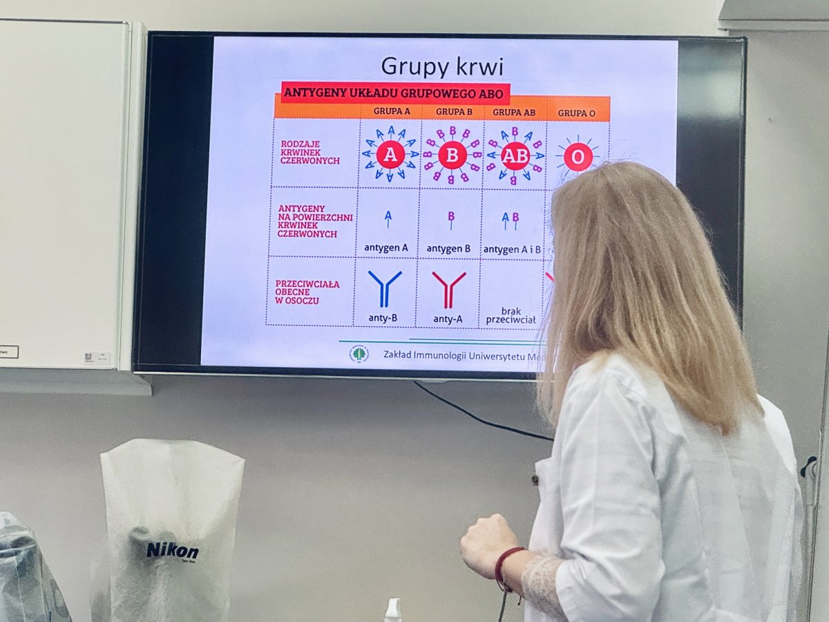 - "Oznaczanie grupy krwi" - Zakład Immunologii, poprowadzone przez dr hab. Wiolettę Ratajczak-Wronę i dr hab. Marzenę Garley,