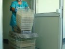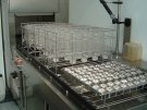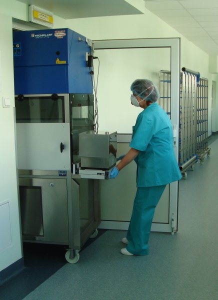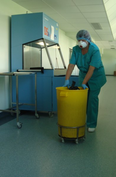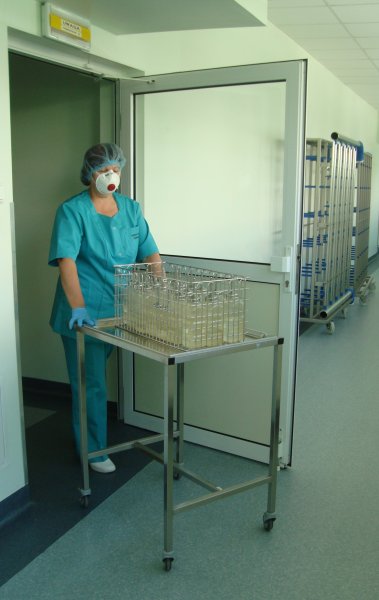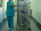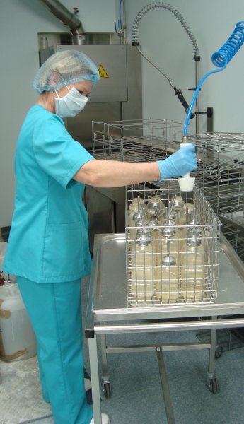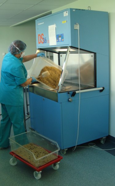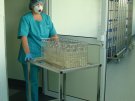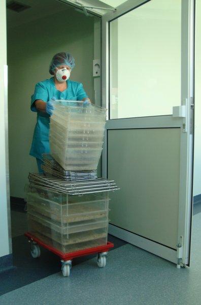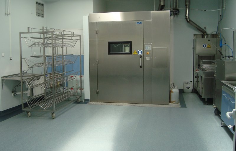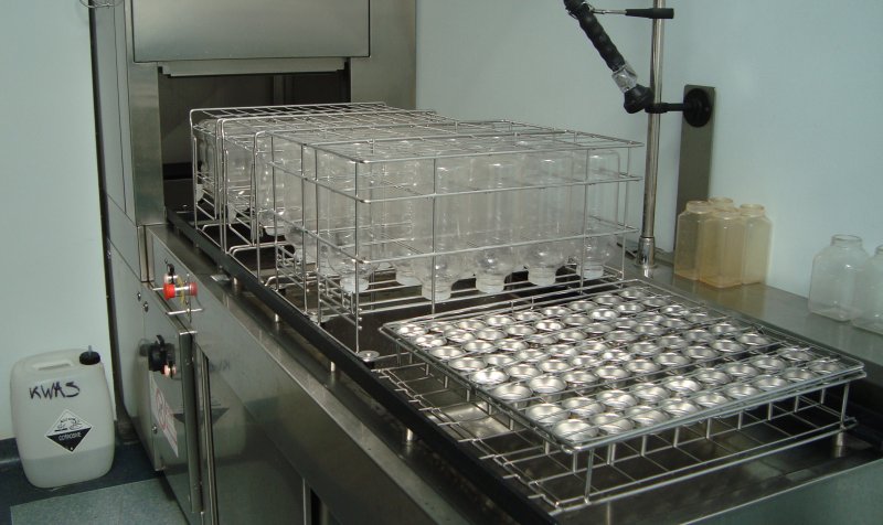 Praca na myjni brudnej polega na odbieraniu i czyszczeniu brudnego sprzętu przekazywanego poprzez śluzy z bariery: hodowlanej i eksperymentalnej. Sprzęt nie posiadający zasilania myty jest w przelotowych automatycznych myjkach, natomiast sprzęt posiadający zasilanie jest czyszczony ręcznie, konserwowany i dezynfekowany w Clarusie. Clarus jest to urządzenie kompatybilne z myjką regałową. Służy do dezynfekcji sprzętu nie nadającego się do sterylizacji w autoklawie. Dezynfekcja odbywa się za pomocą H2O2, cykl trwa około 5 godzin.