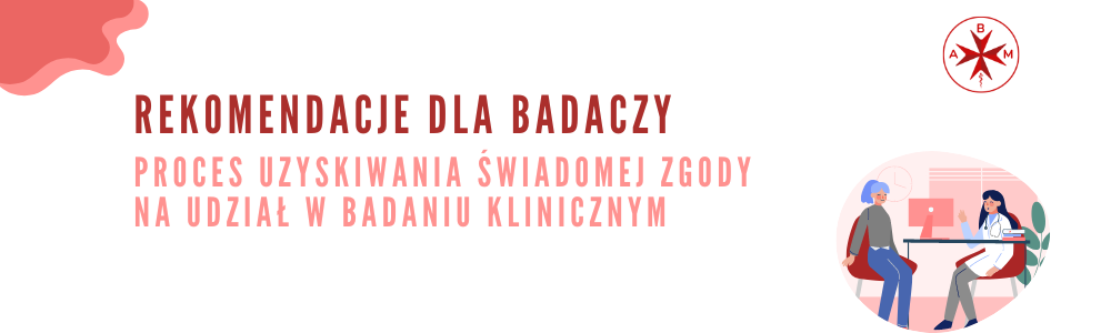 Agencja Badań Medycznych w ramach wsparcia rozwoju Polskiej Sieci Badań Klinicznych i jednostek realizujących badania kliniczne, wypracowała we współpracy z ekspertami zewnętrznymi Rekomendacje dla Badaczy dotyczące procesu udzielania informacji o badaniu klinicznym potencjalnemu uczestnikowi lub jego przedstawicielowi prawnemu i uzyskiwaniu świadomej zgody na udział w badaniu wraz z załącznikiem w postaci listy kontrolnej zawierającej najważniejsze kwestie, które powinny zostać omówione podczas całego procesu.