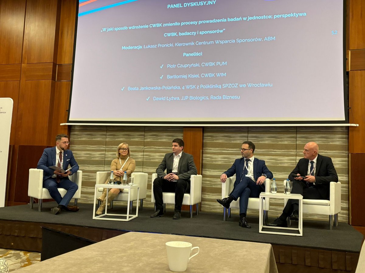 Podczas paneli dyskusyjnych poruszano tematy kluczowe dla efektywnej realizacji badań klinicznych, w tym nowe rozwiązania organizacyjne, wyzwania operacyjne oraz możliwości usprawniania procesów badawczych. Obecność naszej reprezentacji pozwoliła aktywnie uczestniczyć w dyskusjach, które kształtują kierunki rozwoju systemu badań klinicznych.