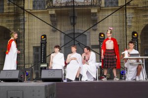 - Na dziedzińcu, przed wejściem głównym, na wprost wejścia głównego, będzie ustawiona scena o wymiarach 8 m x 10 m.