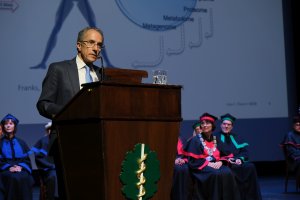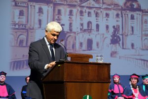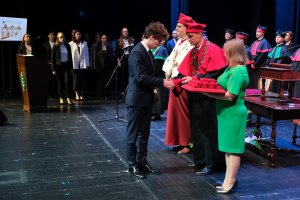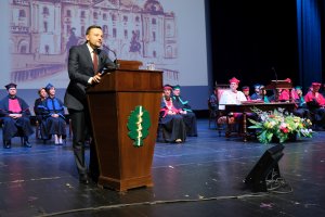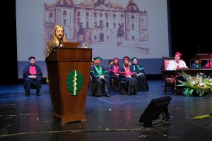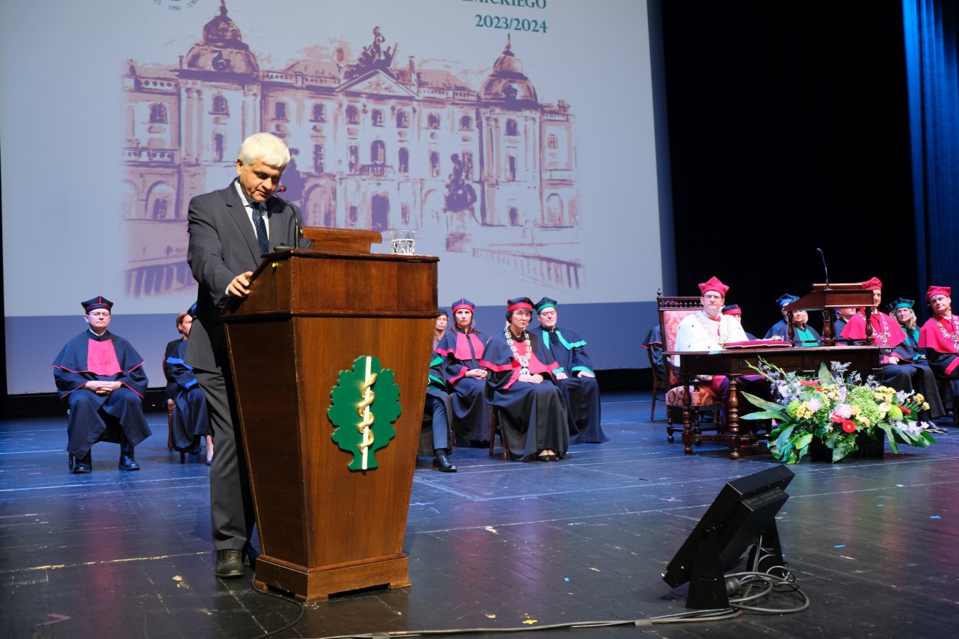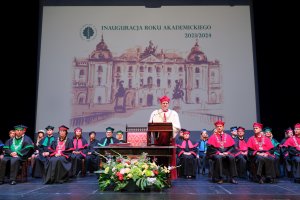 Na koniec przemówienia JM. Rektor zwrócił się do nowoprzyjętych studentów pierwszego roku: „Drogie Koleżanki i Koledzy, Witamy Was w Społeczności Uniwersytetu Medycznego w Białymstoku. Cieszymy się, że wybraliście studia na naszym uniwersytecie, jednej z najlepszych Uczelni w kraju. Życzę Wam abyście mieli w sobie siłę, aby pokonać wszelkie trudności i wyzwania związane z niezbędną, ciężką pracą i osobistym zaangażowaniem, jakie trzeba włożyć, żeby osiągnąć sukces na studiach medycznych. Życzę wam niezapomnianych wrażeń i przeżyć związanych z życiem studenckim, życzę nawiązania szczerych przyjaźni oraz radości z każdego dnia spędzonego na Uniwersytecie w Białymstoku.”