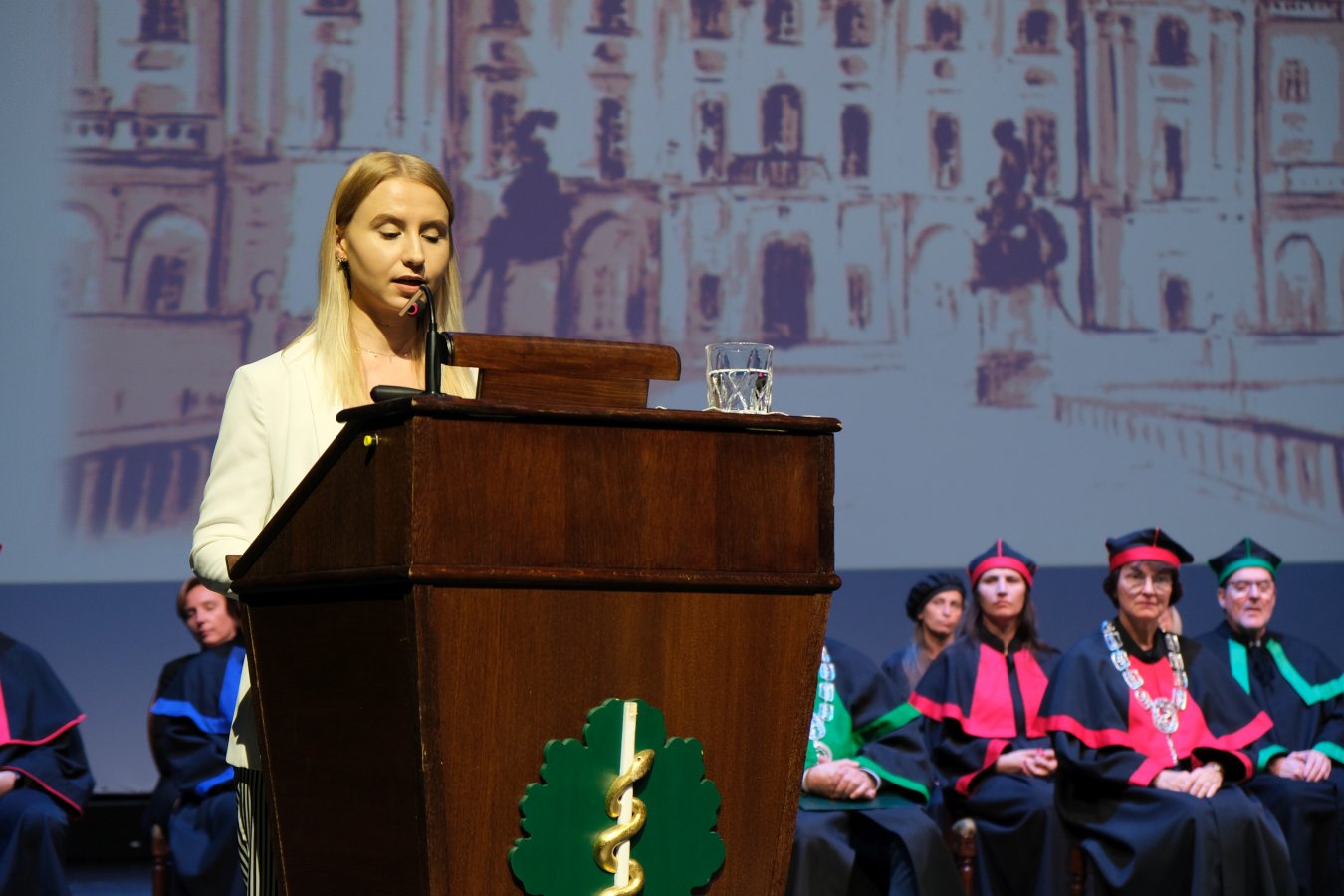 Starościna III roku ED, Lena Meyer zwracając się do Wspólnoty Akademickiej UMB powiedziała m.in.: „Początek nowego roku akademickiego to czas odnowy i nowych początków. To czas, w którym na nowo rozpalamy naszą pasję do nauki, wyznaczamy nowe cele i wykorzystujemy możliwości, które się przed nami otwierają. Każdy z nas, niezależnie od tego, czy jest studentem, czy nauczycielem, ma do odegrania wyjątkową rolę we wspólnym dążeniu do wiedzy i rozwoju. Wkraczając w nowy rok akademicki, nieśmy ze sobą wnioski wyciągnięte z przeszłości, mądrość zdobytą na podstawie naszych doświadczeń i entuzjazm do odkrywania niezbadanych terytoriów. Do każdego wyzwania podchodźmy jak do szansy na rozwój osobisty i intelektualny, bo to poprzez wyzwania odkrywamy nasz prawdziwy potencjał”.