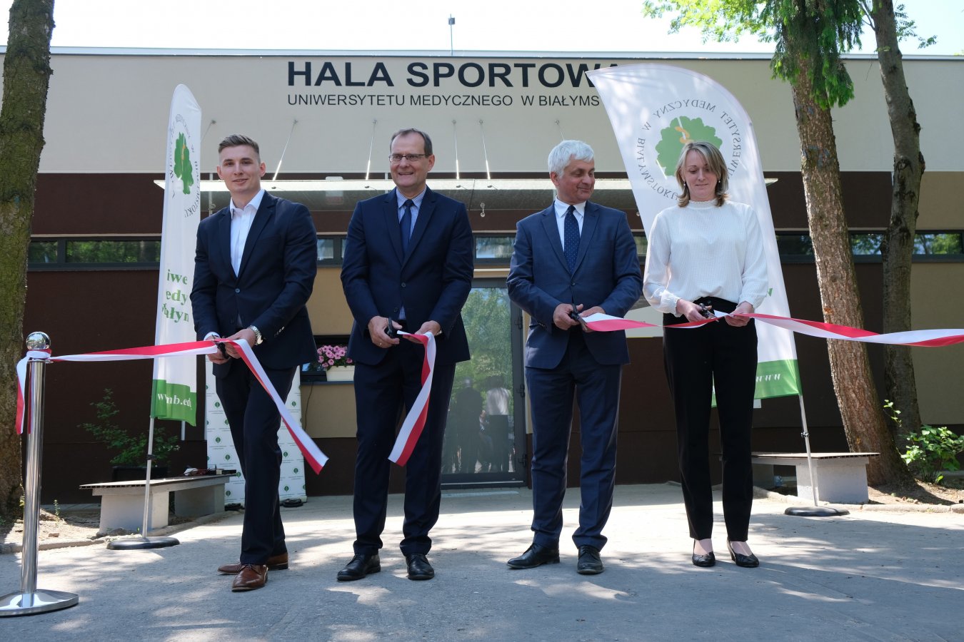 Początek zimy 2020 r. Wszystko zaczęło się od telefonu wojewody podlaskiego Bohdana Paszkowskiego do Rektora UMB Adama Krętowskiego z prośbą o pomoc. Trwała pandemia koronawirusa. Służby sanitarne w poszczególnych regionach w Polsce szukały dużych obiektów, które szybko da się przekształcić w szpitale tymczasowe. Hala UMB była idealna. Wystarczająco duża, a przy tym bardzo blisko szpitali klinicznych. Szczęściem była też trwająca obok budowa Centrum Psychiatrii UMB (dosłownie po drugiej strony ulicy). Kiedy zapadła decyzja o przebudowani hali na szpital, robotnicy ze sprzętem błyskawicznie pojawili się w nowej inwestycji. Po niespełna miesiącu wszystko było już gotowe: nowe instalacje medyczne, nowe pomieszczenia dla medyków, a przede wszystkim 80 boksów dla pacjentów. Przez dwa lata pomoc medyczną otrzymało tu 450 osób (hala była wykorzystywana jeszcze jako punkt szczepień masowych).