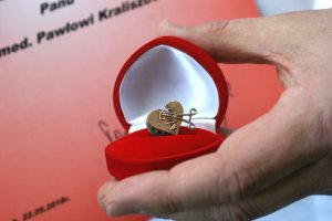 - Te odznaczenia są małe, ale symboliczne - mówi prof. Hirnle. - Wręczając te złote serduszka (wykonane z 24-karatowego złota - red.) chcemy uhonorować osoby, które od lat wspierają białostocką kardiochirurgię. Pani Beata Kropiewnicka to osoba z zarządu szpitala, która rozumie problemy i specyfikę naszej kliniki. Zawsze mogliśmy się do niej zwrócić o pomoc wiedząc, że możemy liczyć na życzliwość. Dr Paweł Kralisz to kardiolog inwazyjny, który nigdy nie odmawia nam pomocy. Nie ma znaczenia, czy operujemy rano czy w nocy, wystarczy telefon, a on zawsze gotów stanąć wspólnie do stołu operacyjnego i służyć swoją wiedzą. Z kolei dr Aksiucik przez wiele lat kierował oddziałem kardiologicznym w szpitalu miejskim i również wykazywał się wielką przychylnością i zrozumieniem. Nigdy nie odmawiał przyjęcia i prowadzenia trudnych chorych po operacjach serca.