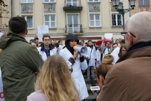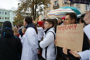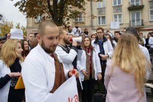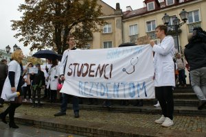 - Chcemy dać wsparcie naszym starszym kolegom. Pokazać, że sprawa nie dotyczy małej grupki rezydentów w Warszawie, to problem dotyczący całego kraju - powiedział Łukasz Gołoś, kiedy spotkaliśmy go na pierwszej pikiecie na białostockim Rynku Kościuszki. Zorganizował ją razem z koleżankami z roku Urszulą Domysławską i Joanną Kozłowską.