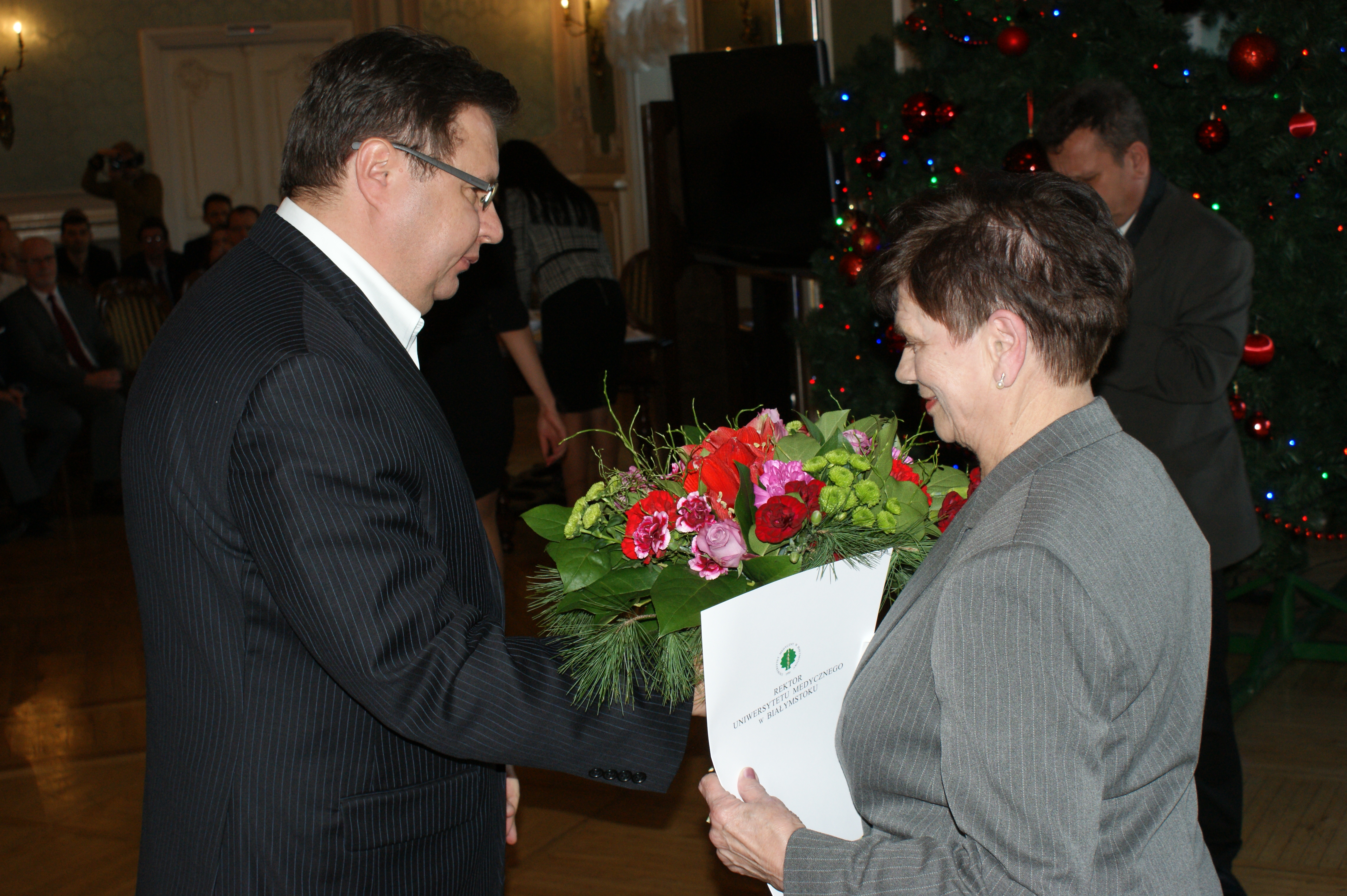 Końcówka roku to już tradycyjne spotkanie władz uczelni z najlepszymi jej naukowcami. Z jednej strony ma ono charakter świąteczny, z drugiej – to okazja do wręczenia symbolicznych dyplomów dla najlepszych z nich. Wyróżnienia przyznano w kilku kategoriach: nagrody naukowe, nagrody dydaktyczne, po raz kolejny nagrody dla najlepszych wykładowców wg studentów oraz po raz pierwszy - nagrody dla tych, co zdobyli najwięcej grantów badawczych, czy udało się im zdobyć patent lub skomercjalizować swoje osiągnięcia oraz nagroda za całokształt działalności. Choć dyplom był symboliczny, to wcześniej na konta wyróżnionych księgowość wysłała stosowne premie, w myśl zasady „najwięcej dla najlepszych”.