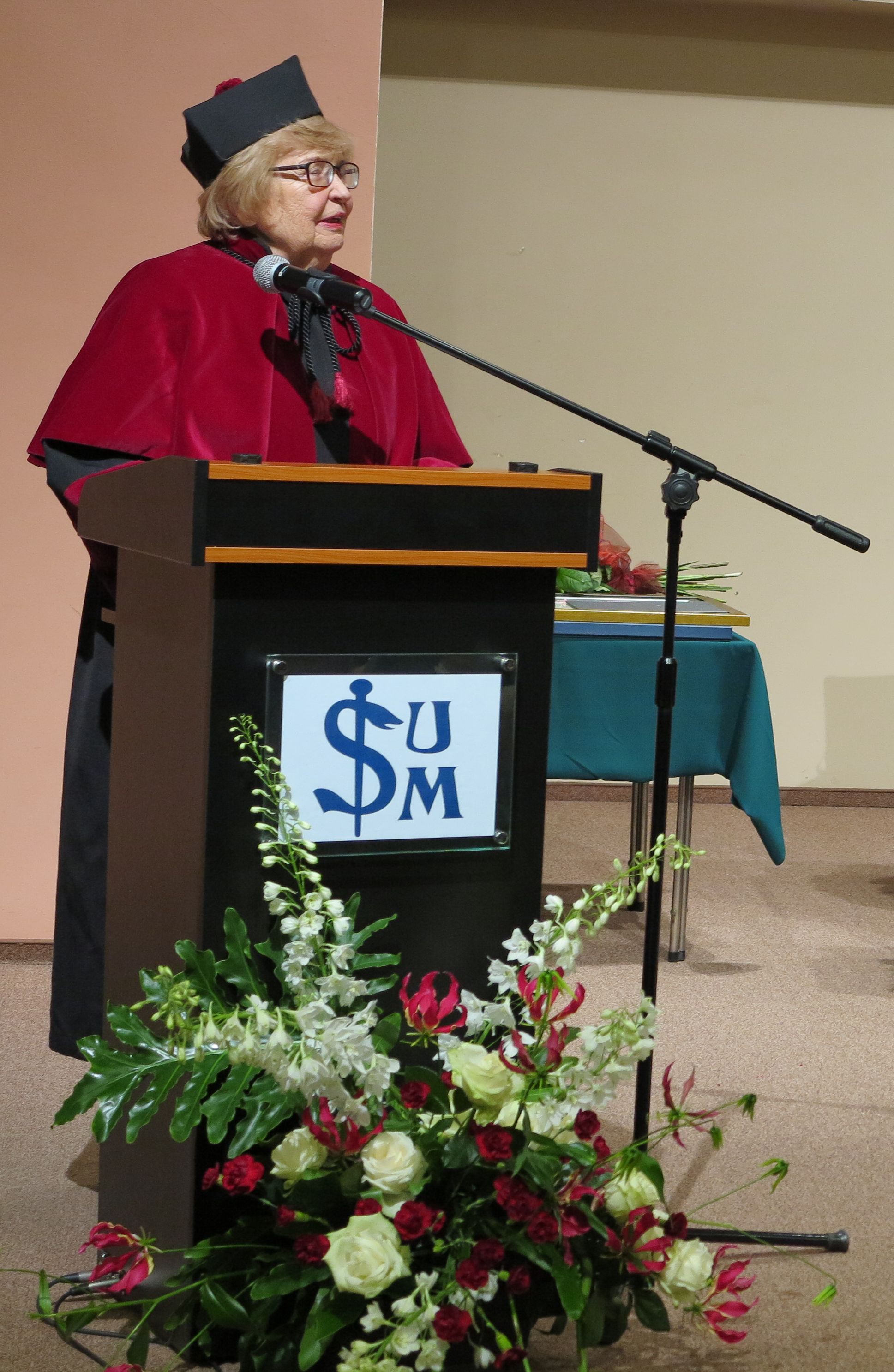 - Nadanie doktoratu honoris causa stanowi symboliczny dowód akademickości uczelni i jej misji do wskazywania i kreowania wzorców godnych naśladowania (…) Jestem dumny z takiego wyboru naszej społeczności akademickiej i z radością oraz satysfakcją witam Panią Profesor w naszym gronie.