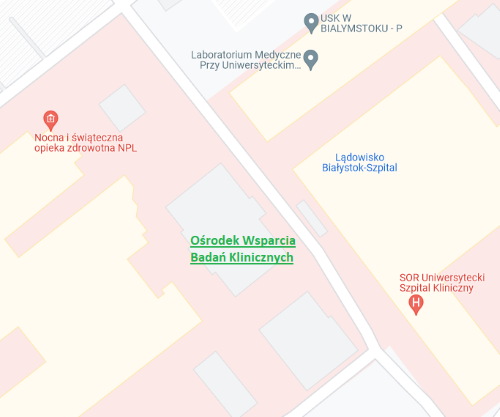 Wejście od ul. Żelaznej | Adres do korespondencji: Biuro Transferu Technologii Uniwersytet Medyczny w Białymstoku ul. Jana Kilińskiego 1 |