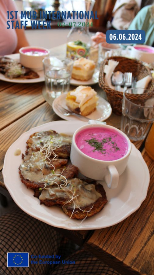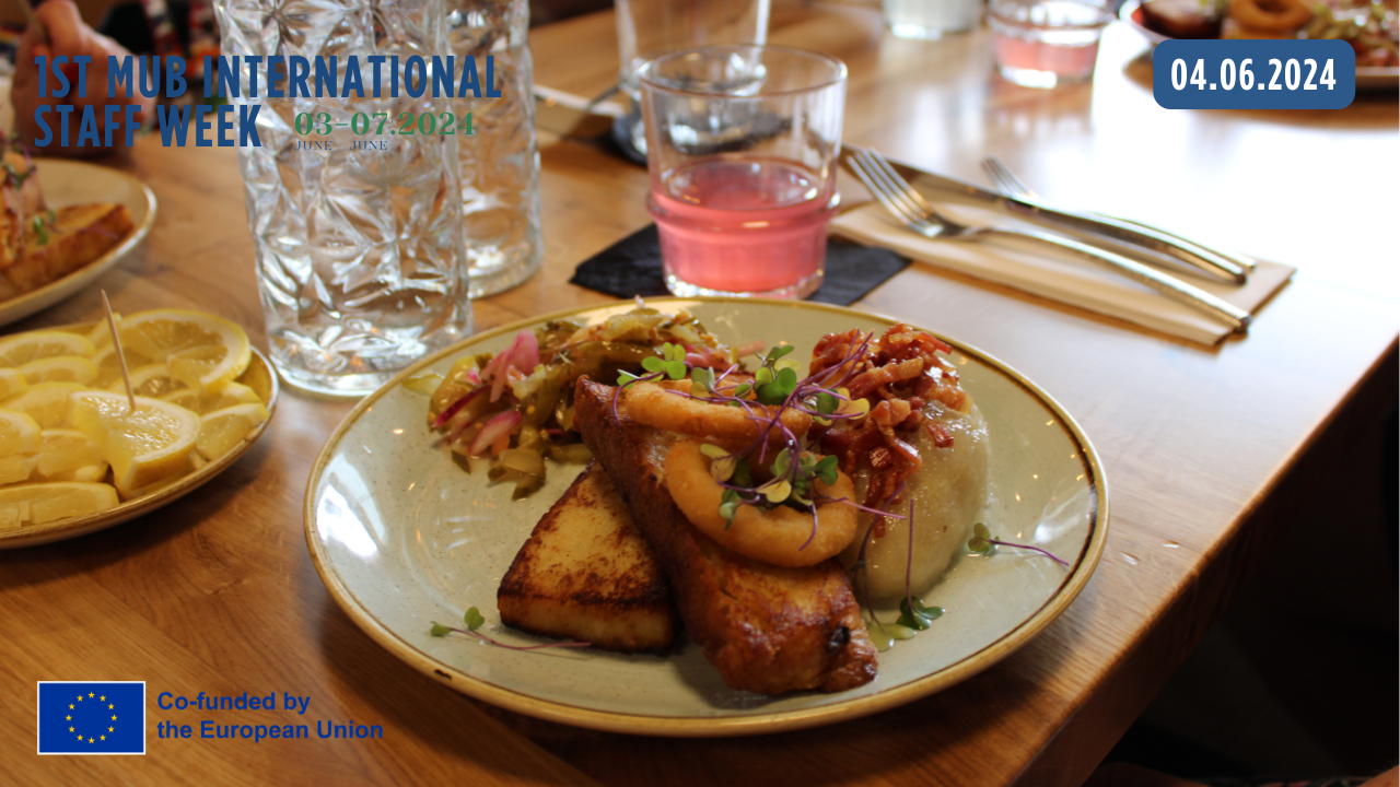 Po niezwykle interesujących wykładach uczestnicy 1st MUB International Staff Week wraz z osobami zaangażowanymi w realizację Programu Erasmus+ udały się na lunch do Restauracji Enklawa. Przedstawiciele zagranicznych uczelni mieli szansę spróbować takich przysmaków jak babka ziemniaczana czy kartacze.