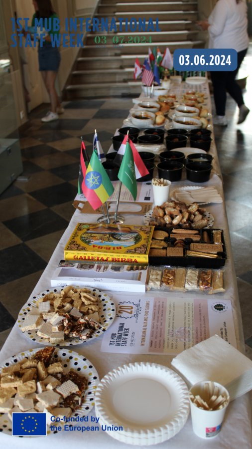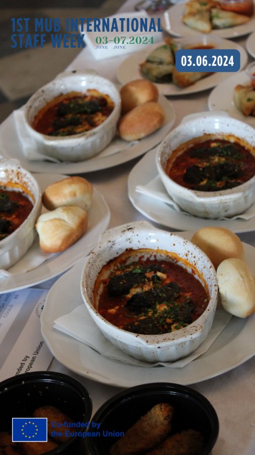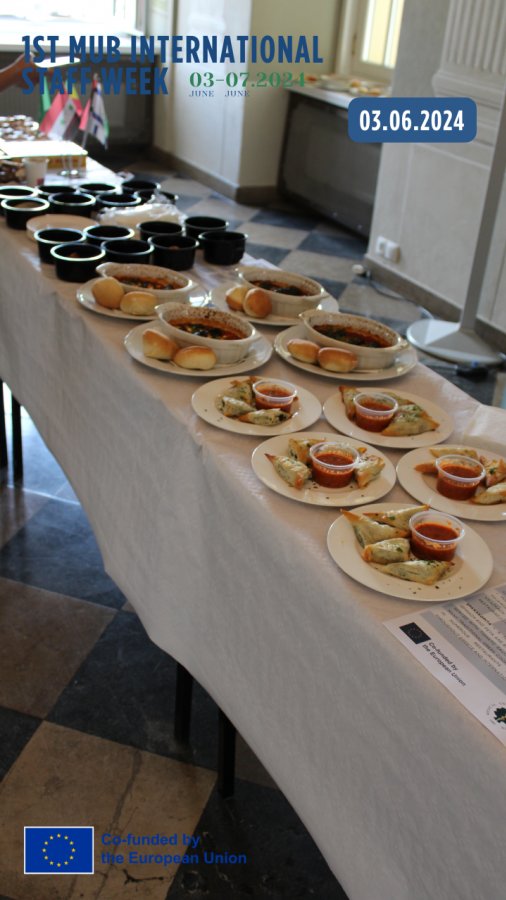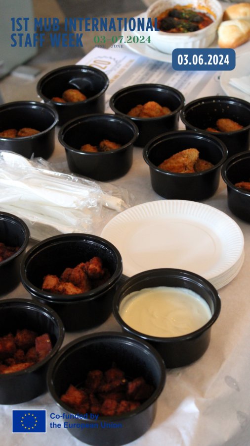 Na uczestników oraz studentów i pracowników UMB, którzy odpowiednio wcześniej zarejestrowali się na wydarzenie International fair and food tasting czekały przysmaki kuchni hiszpańskiej, greckiej, tureckiej, francuskiej, litewskiej oraz polskiej. W tej części wydarzenia udział wzięło blisko 100 osób – uczestników 1st MUB International Staff Week, a także studentów i pracowników UMB świętujących 20-lecie istnienia Programu Erasmus+ na Uniwersytecie Medycznym w Białymstoku.