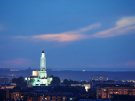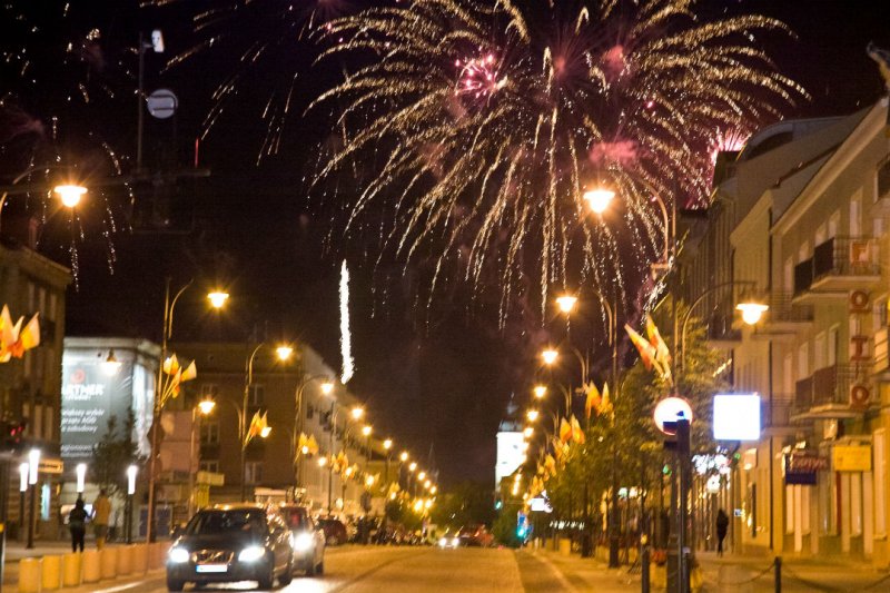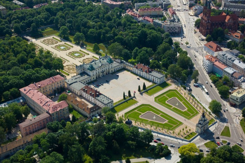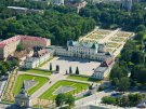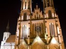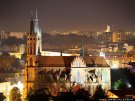 • Galerie. Pałac Branickich nocą. Widok od strony bramy wjazdowej. Logotyp 65 lat Uniwersytetu Medycznego w Białymstoku.