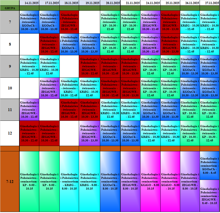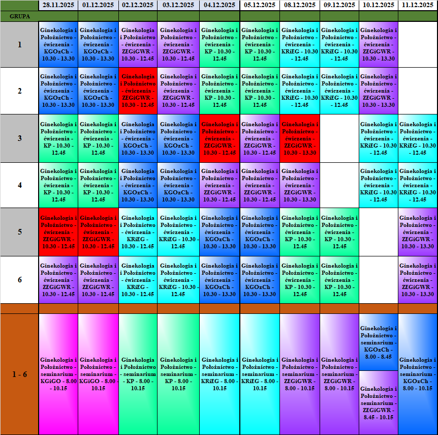 28.11.2025 grupa 5–godz. 10.30-12.45 Dr W. Joanna Rosłan ćw. z dr Rosłan odbywają się w Śniadecji