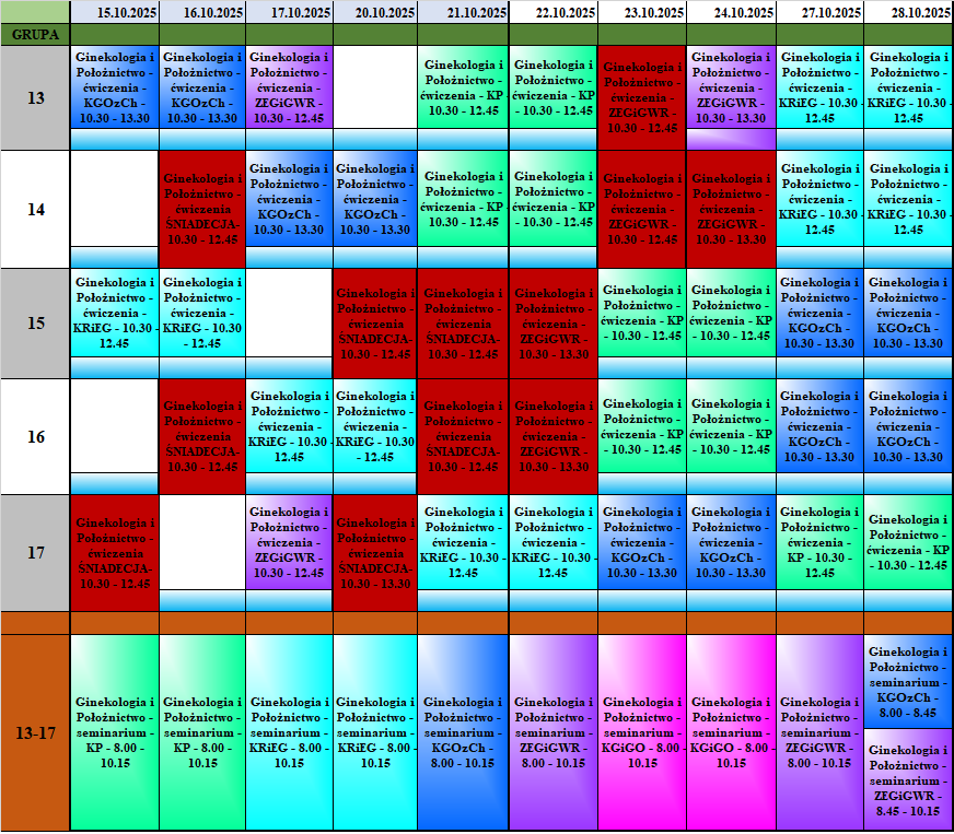 Grupy 13-17 zajęcia realizowane w ZEGiGWR