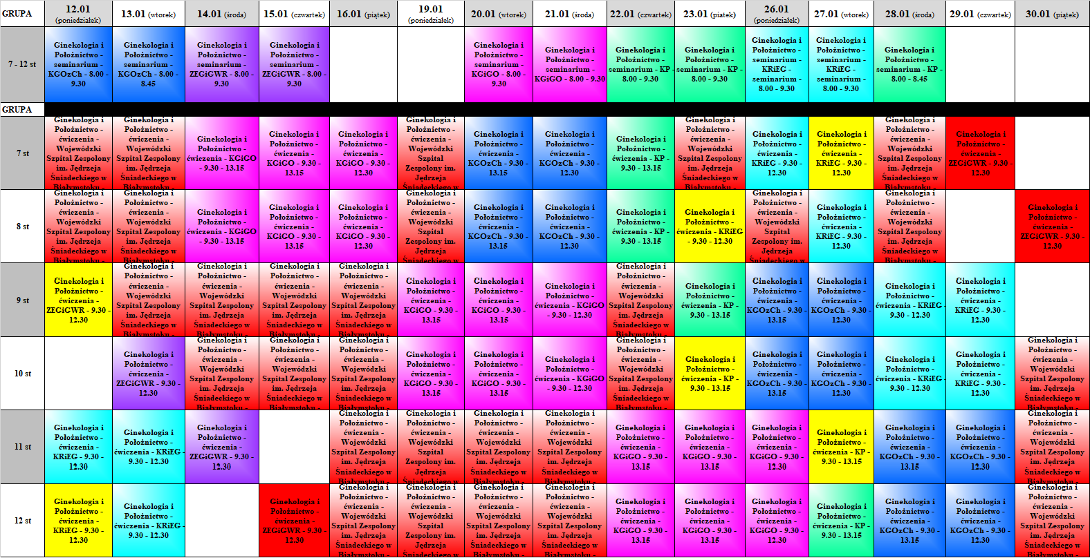 13.01.2026 Śniadecja 10.00 – 13.00 group 7 dr. A. Polewko