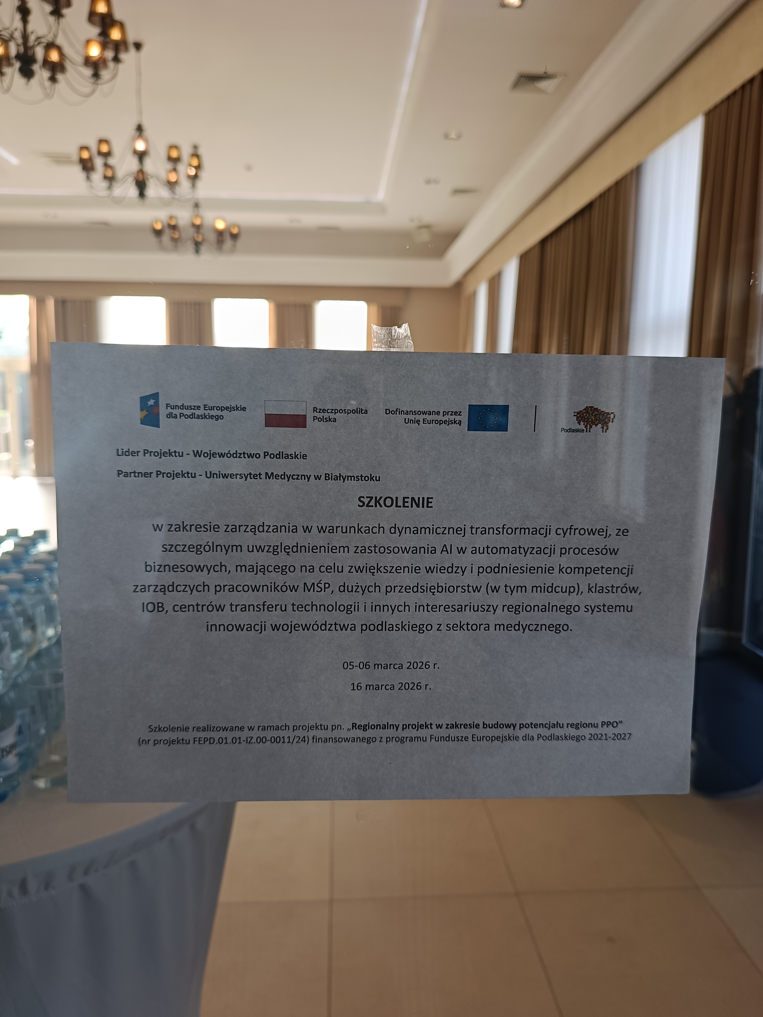 Szkolenie i warsztaty zrealizowano w ramach „Regionalnego projektu w zakresie budowy potencjału regionu PPO”, finansowanego ze środków Unii Europejskiej w ramach programu Fundusze Europejskie dla Podlaskiego 2021–2027