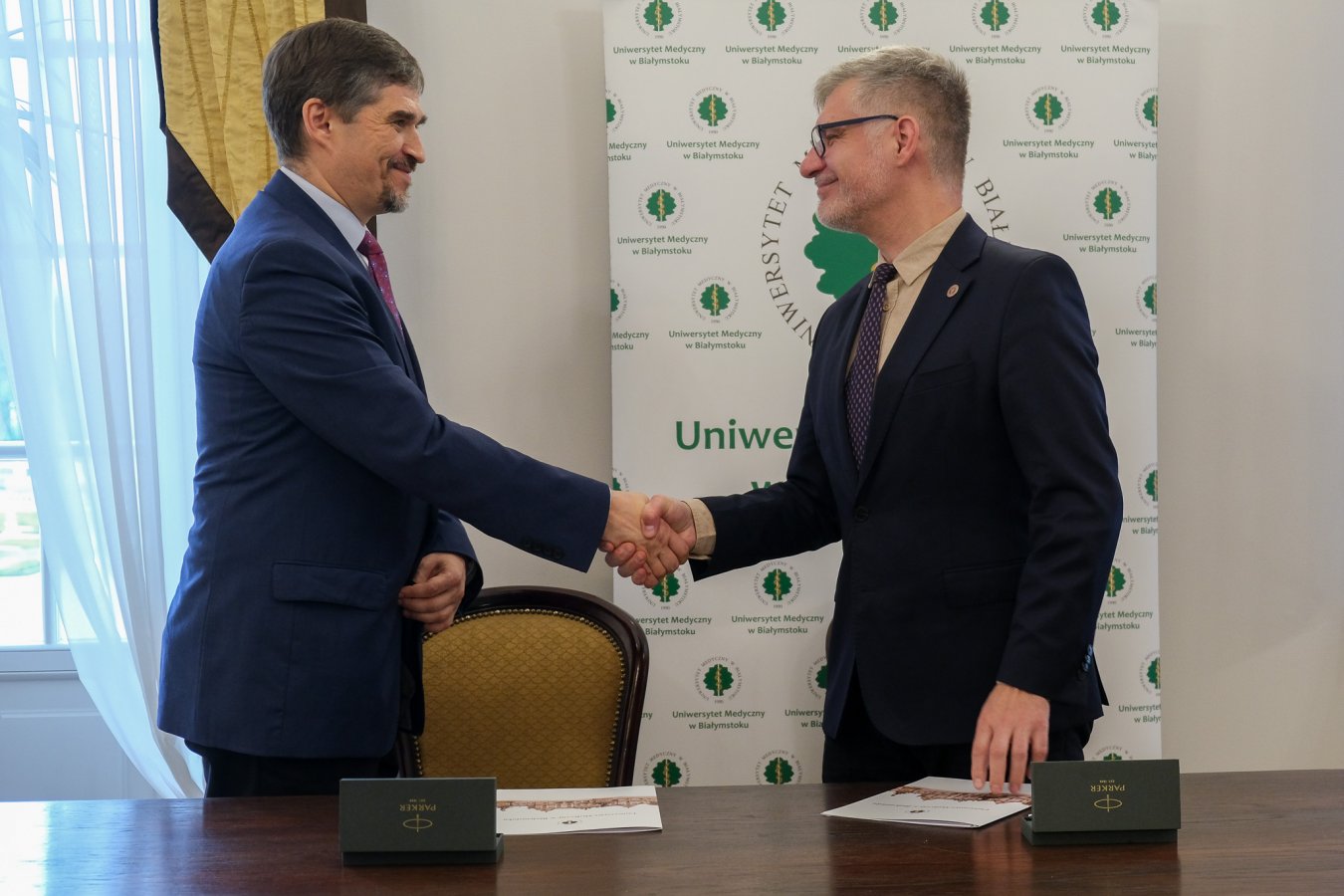 W imieniu UMB porozumienie podpisał prof. Karol Kamiński, Prorektor ds. medycyny prewencyjnej i otwartej nauki, ze strony Uniwersytetu w Białymstoku dokument sygnował dr hab. Krzysztof Korotkich, prof. UwB - Prorektor ds. kształcenia.