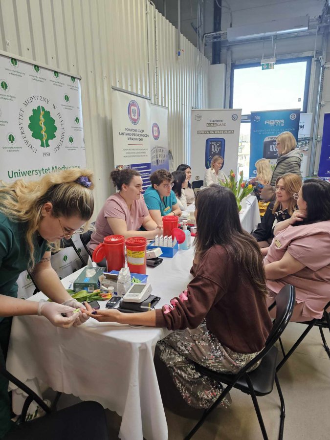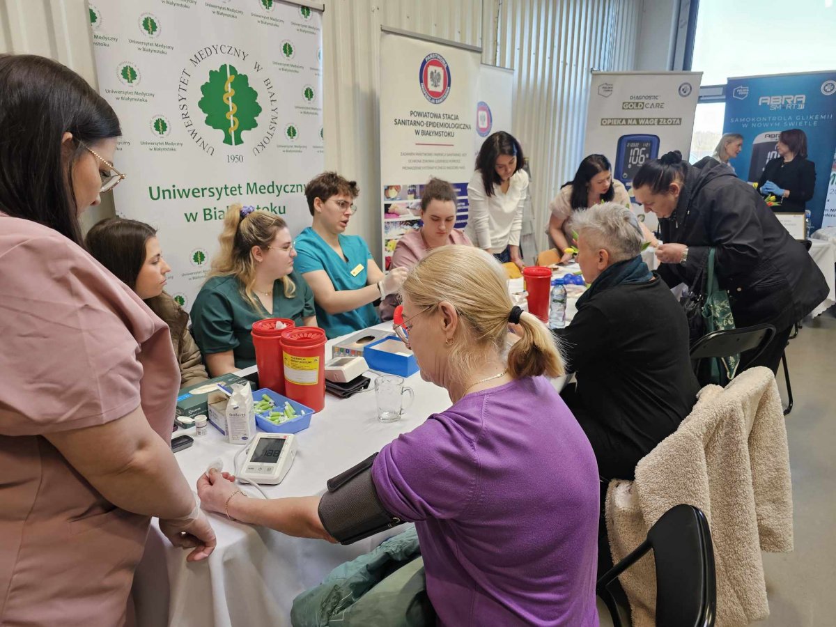 - pomiar ciśnienia, glukozy i kwasu moczowego prowadzony przez studentów Pielęgniarstwa pod opieką dr Joanny Fiłon,