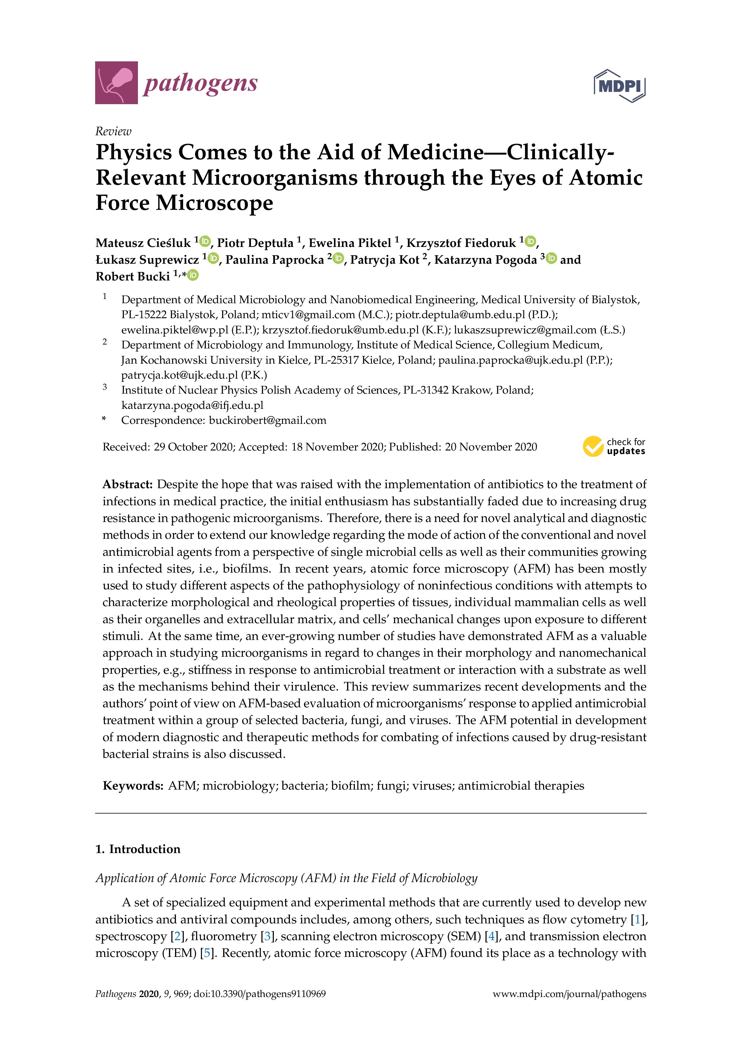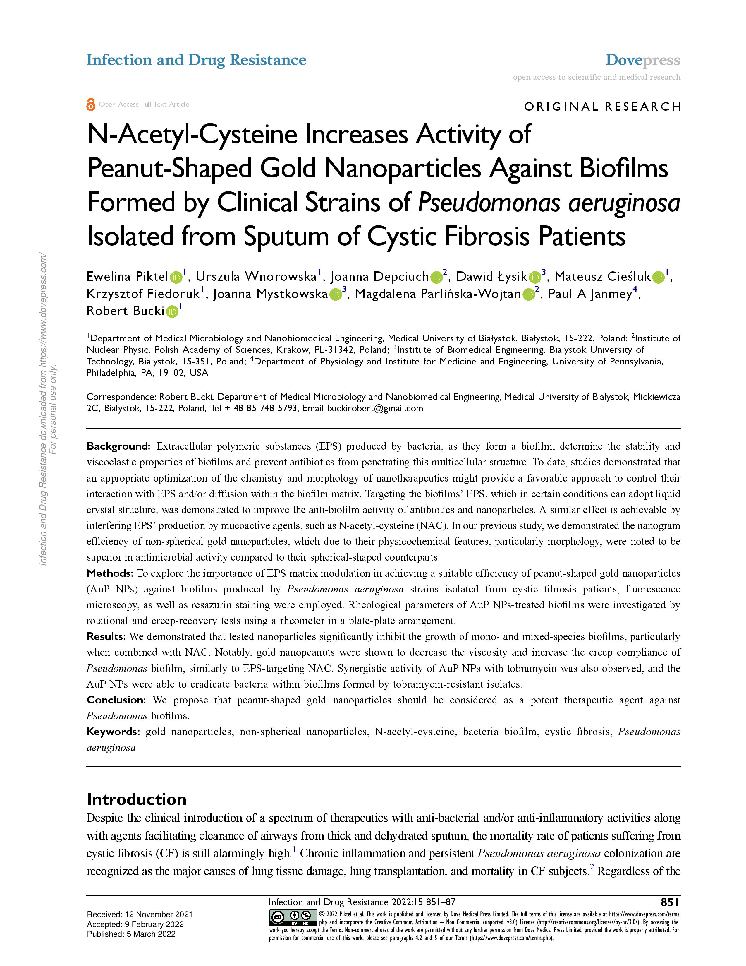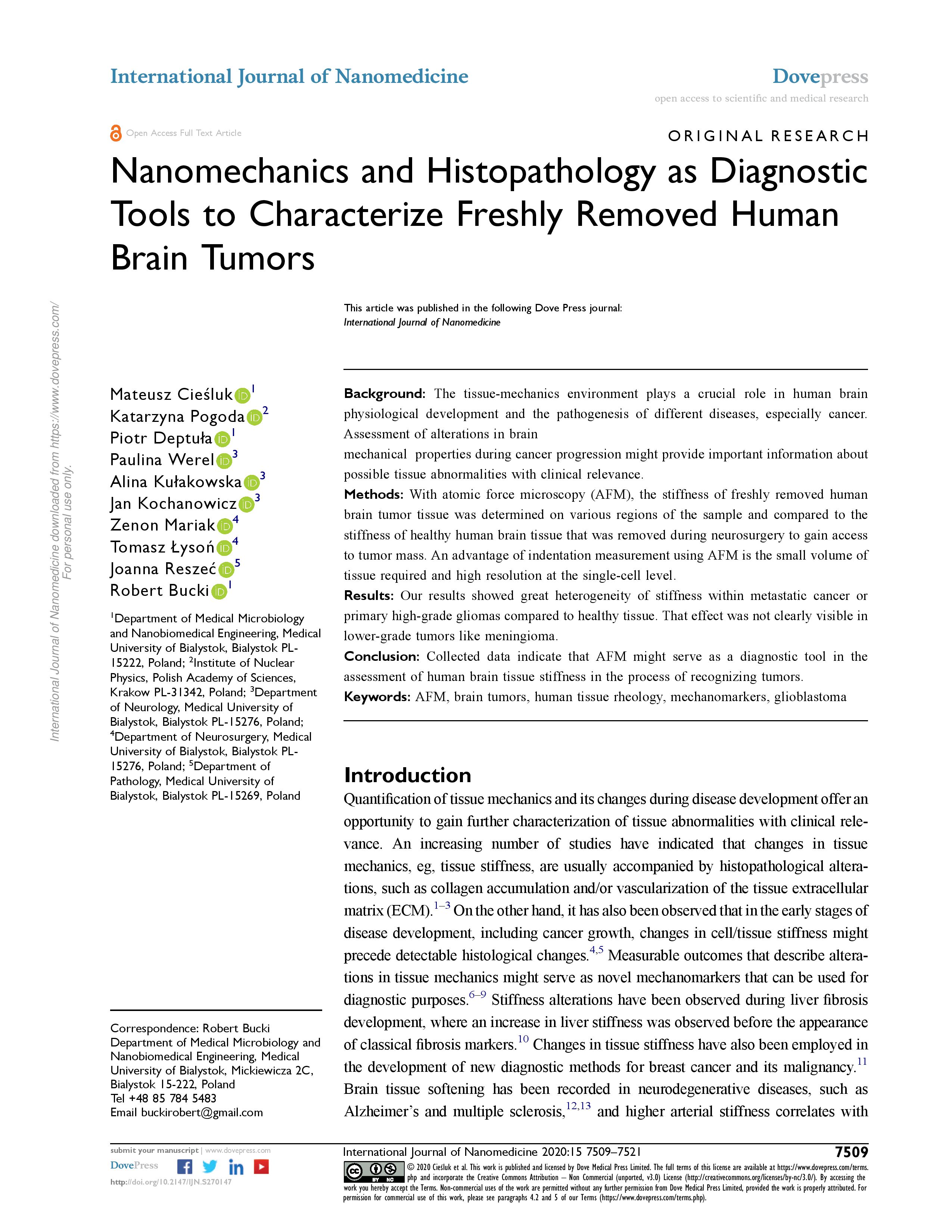 - Grzegorz Michalak, Katarzyna Głuszek, Ewelina Piktel, Piotr Deptuła, Irena Puszkarz, Katarzyna Niemirowicz, Robert Bucki. Polymeric nanoparticles - a novel solution for delivery of antimicrobial agents. Medical Studies /Studia Medyczne; 2016 : 32, 1, s. 56-62