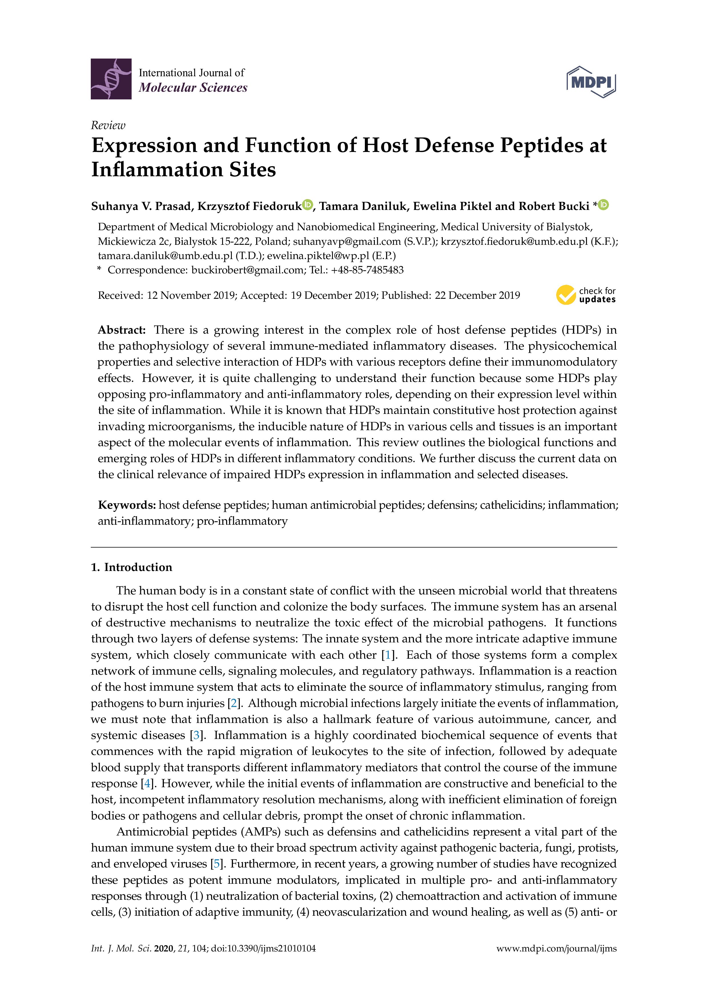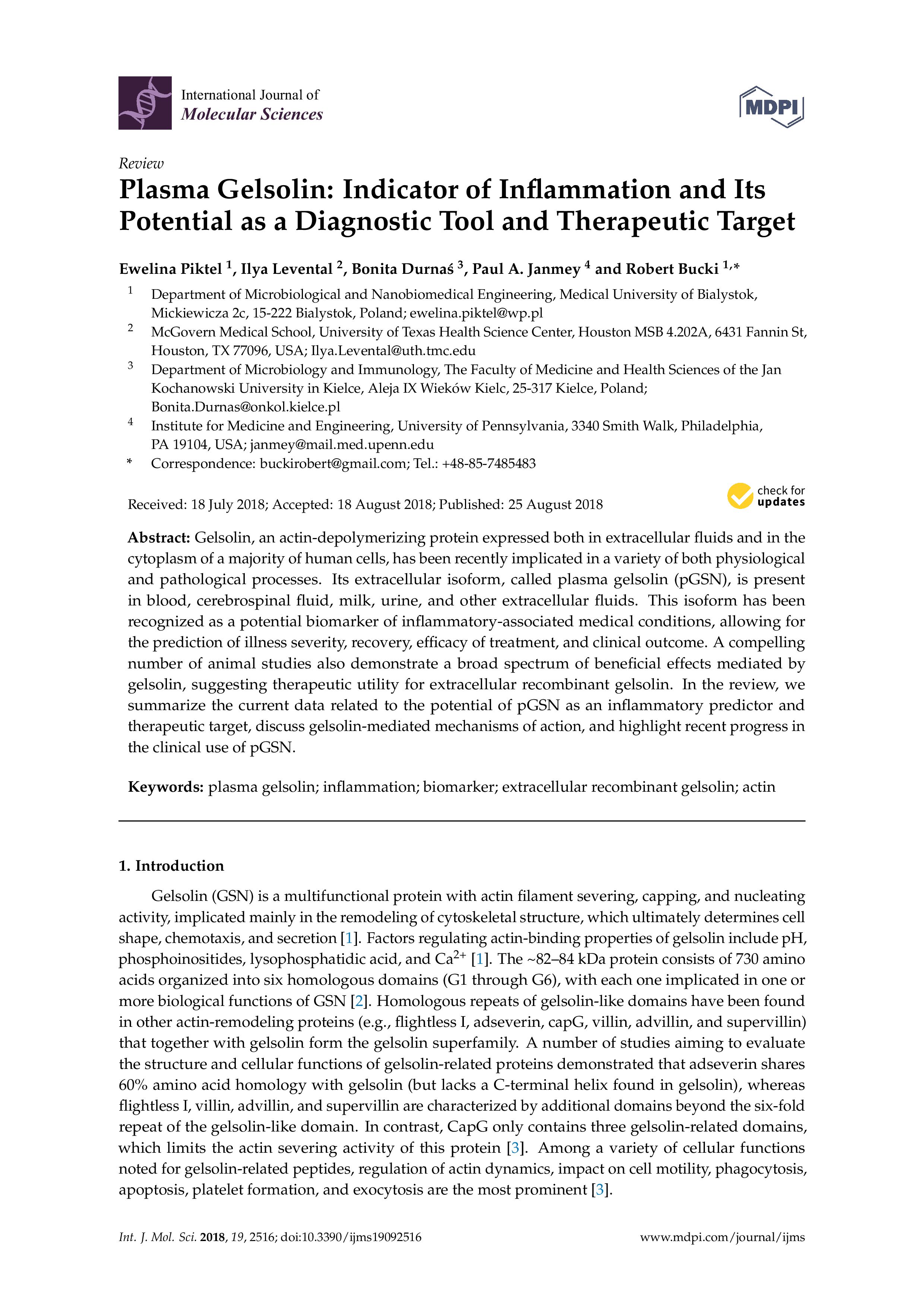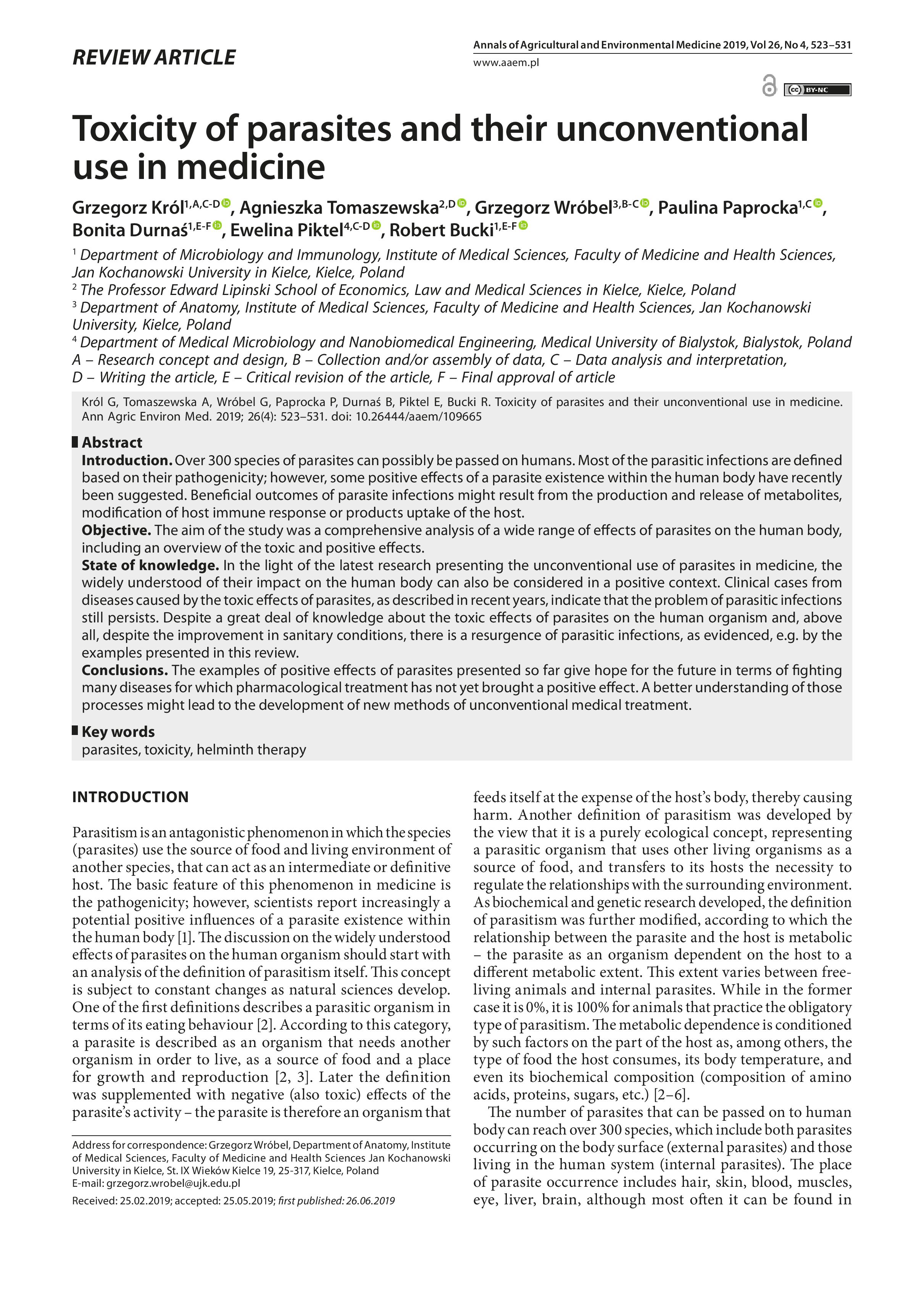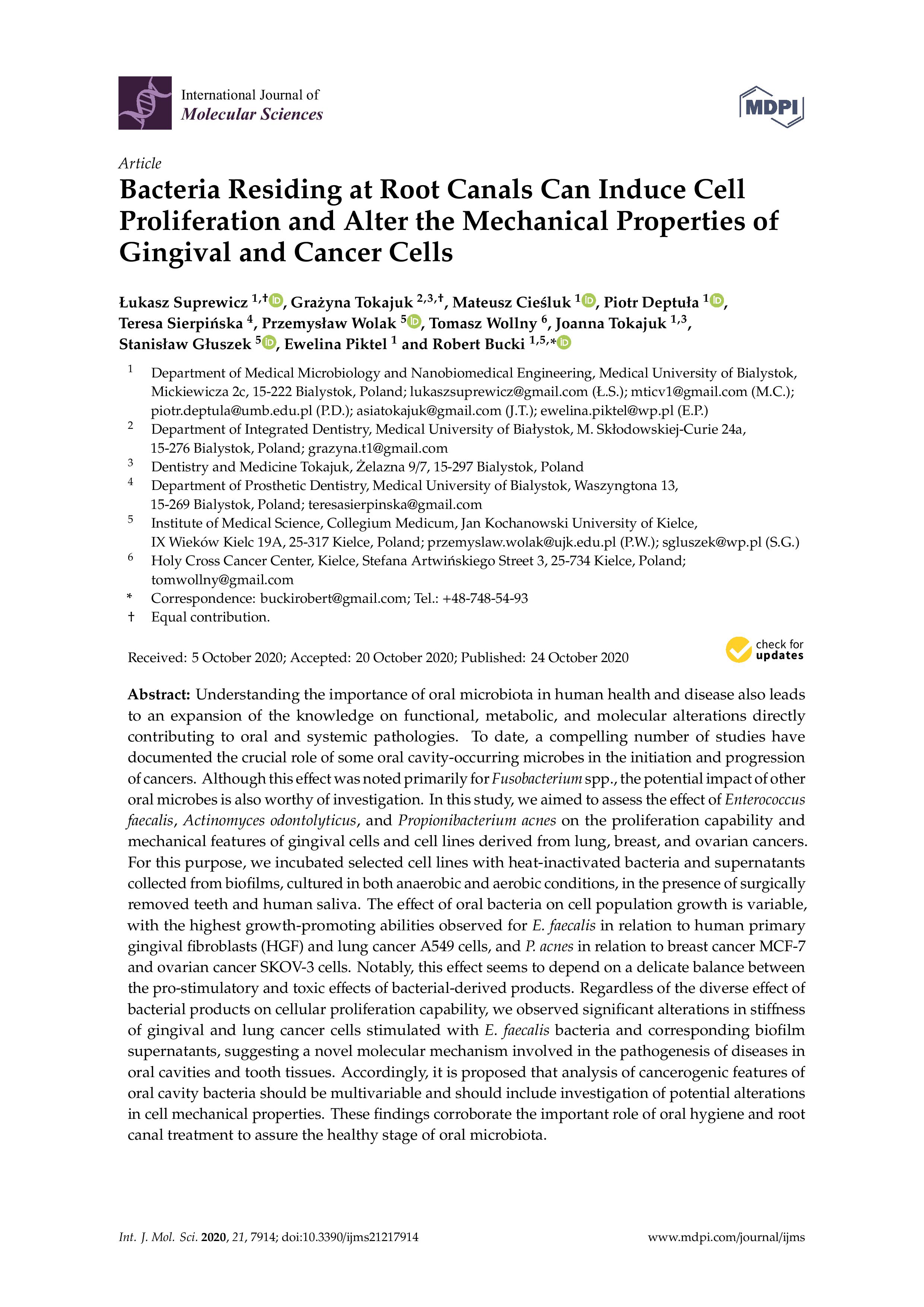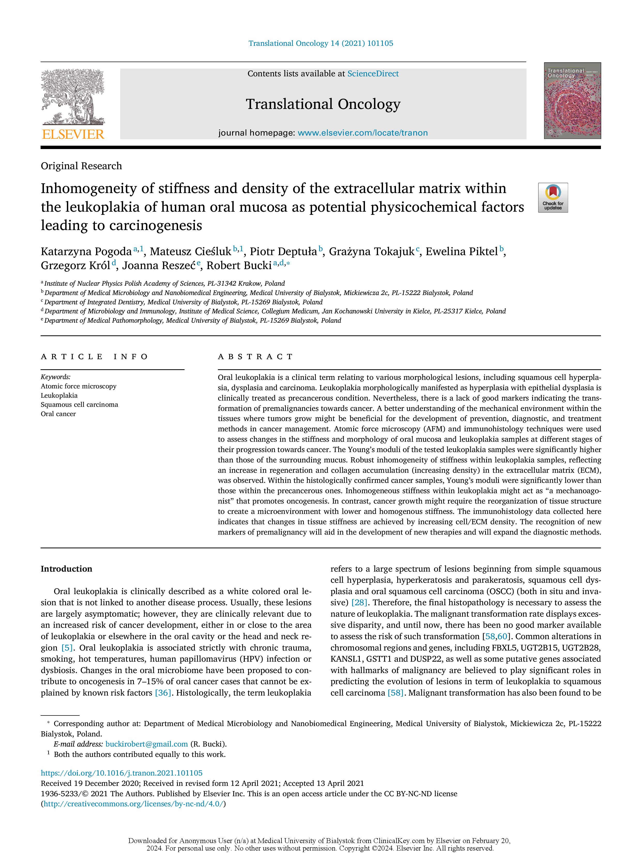 Ewelina Piktel, Katarzyna Niemirowicz, Urszula Wnorowska, Marzena Wątek, Tomasz Wollny, Katarzyna Głuszek, Stanisław Góźdź, Ilya Levental, Robert Bucki. The role of cathelicidin LL-37 in cancer development. Archivum Immunologiae et Therapiae Experimentalis; 2016 : 64, 1, s. 33-46. IF=2.464