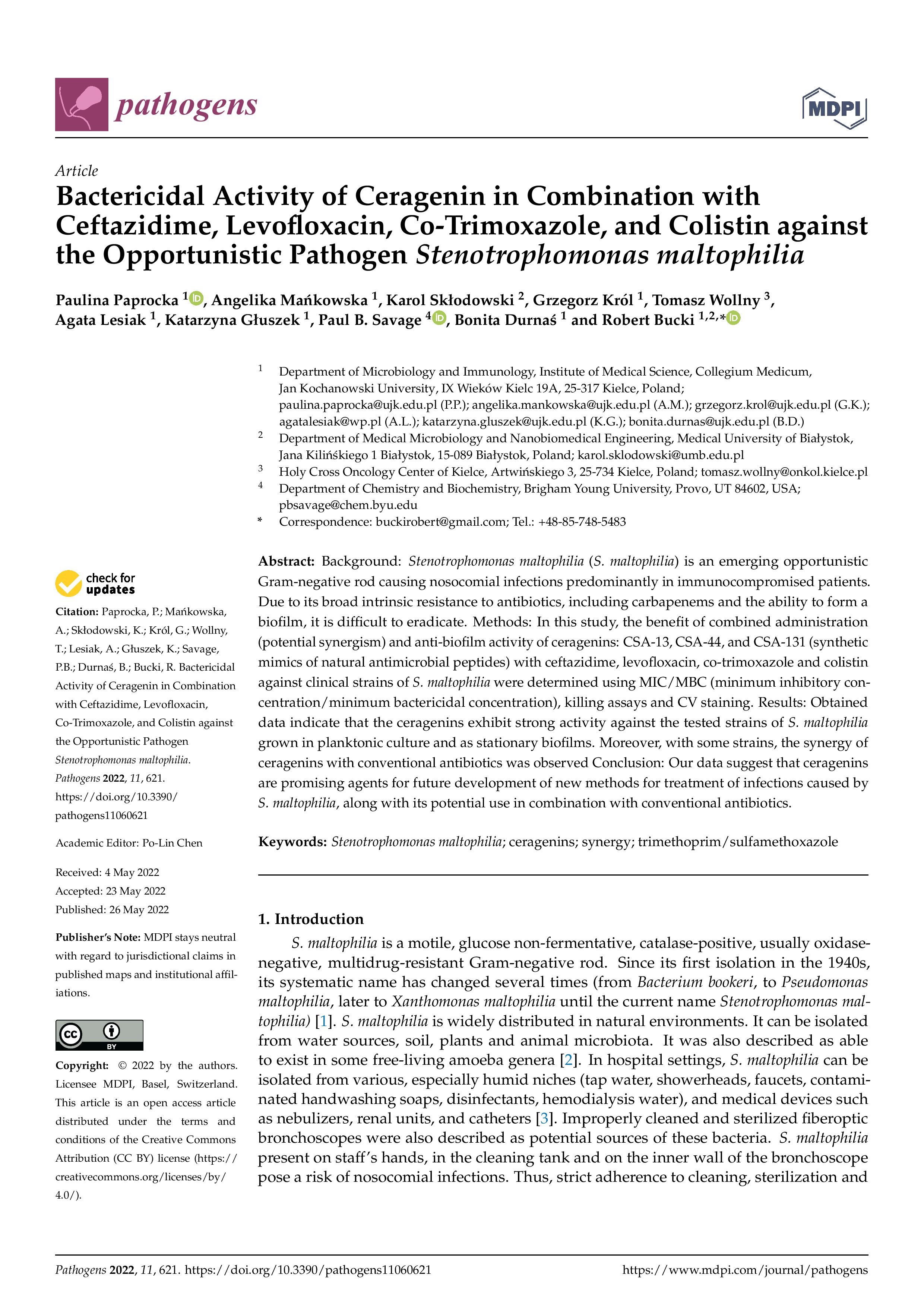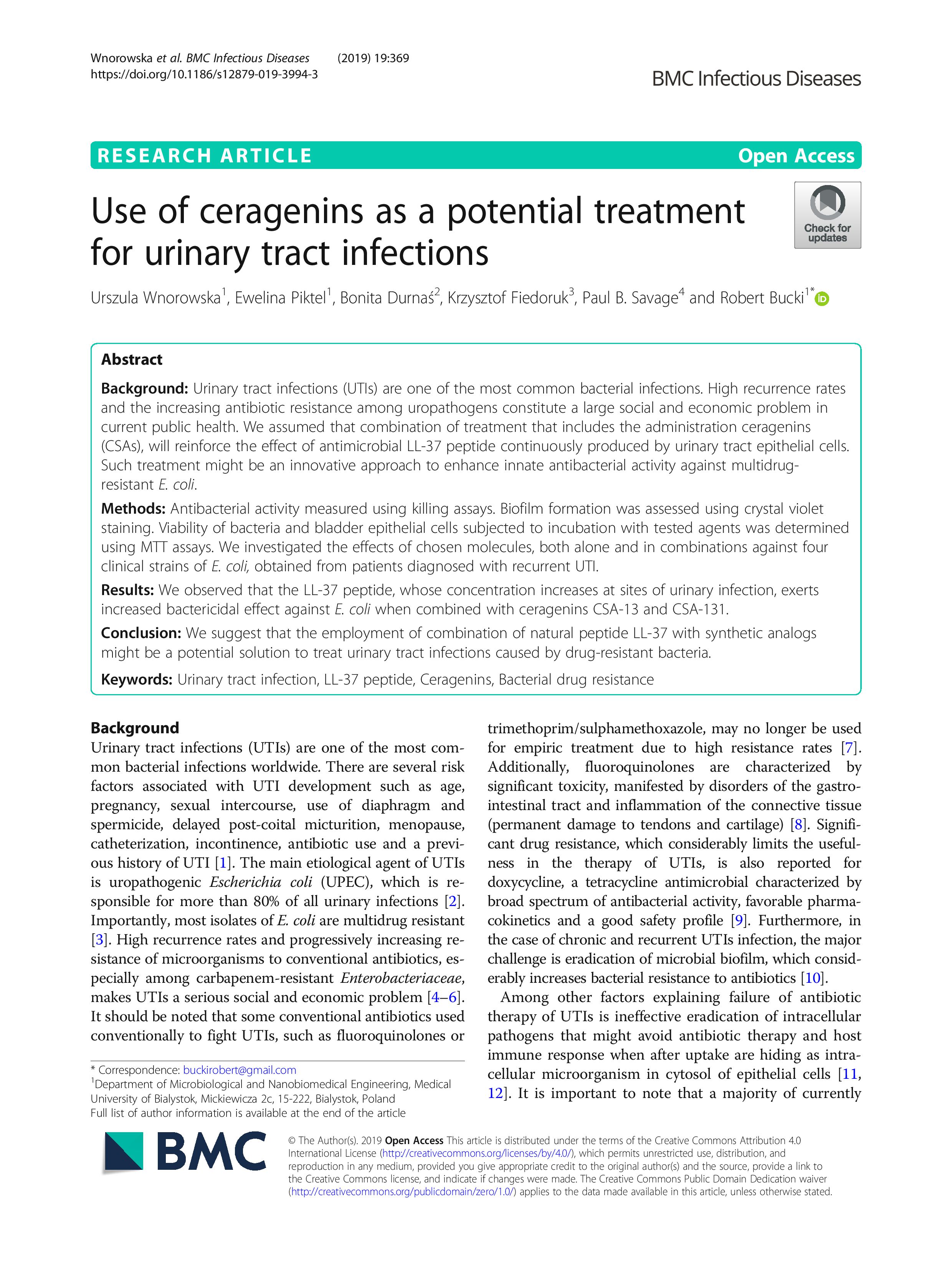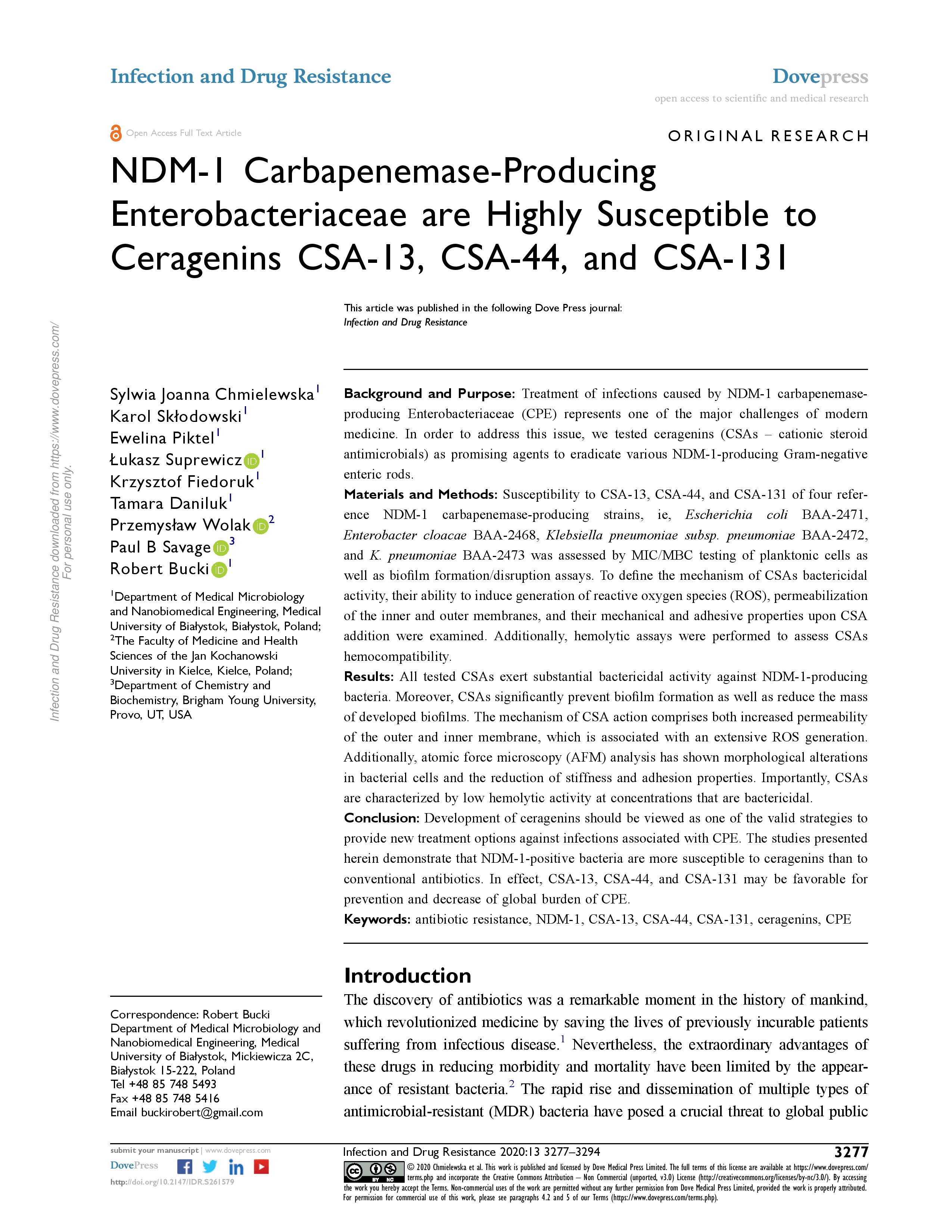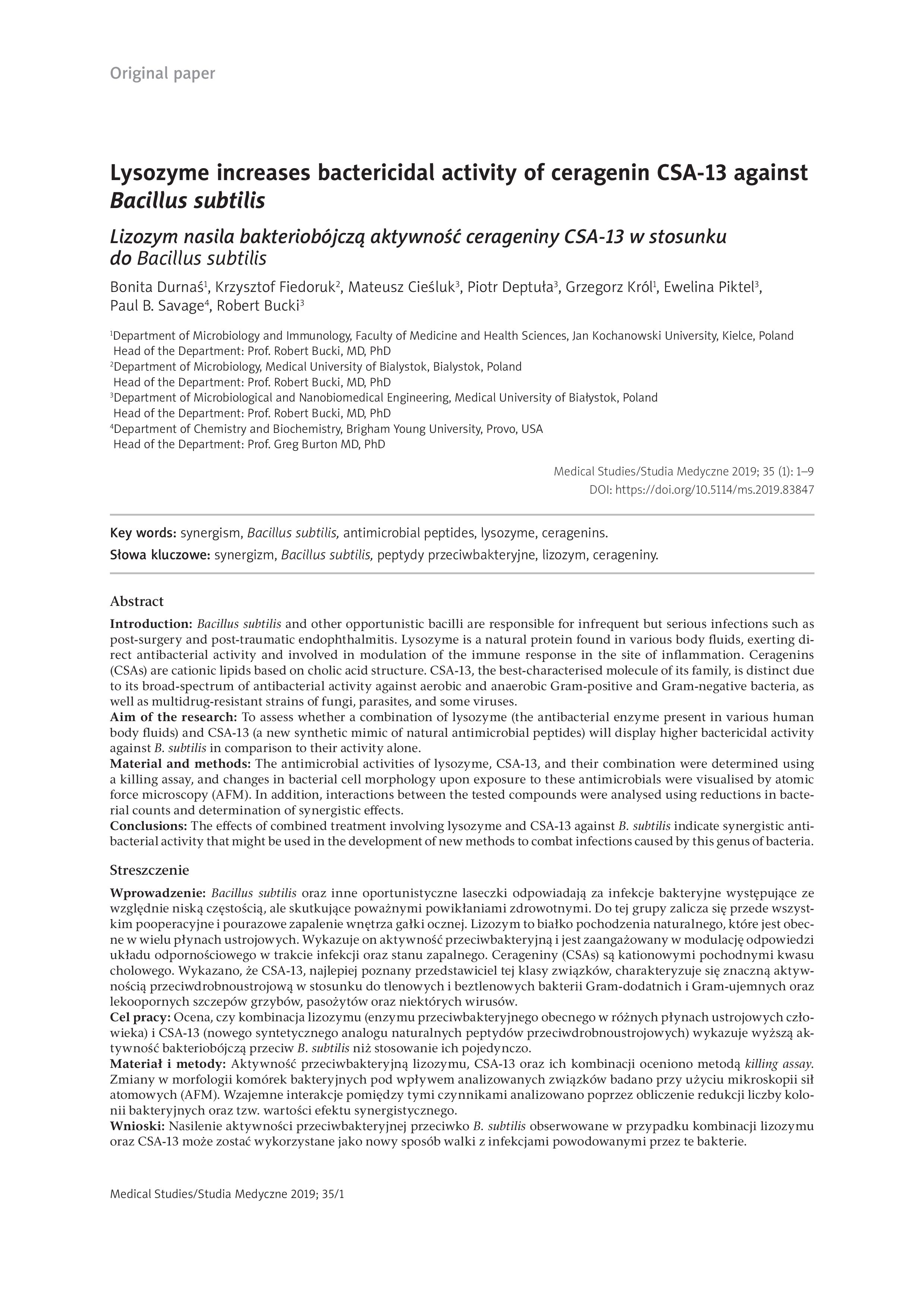 Urszula Surel, Katarzyna Niemirowicz, Michał Marzec, Paul B. Savage, Robert Bucki. Ceragenins - a new weapon to fight multidrug resistant bacterial infections. Medical Studies /Studia Medyczne; 2014 : 30, 3, s. 207-213.