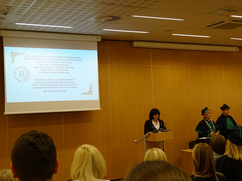 Głównym punktem uroczystości było odebranie przez absolwentów Wydziału dyplomów ukończenia  studiów i praw wykonywania zawodu farmaceuty i diagnosty laboratoryjnego.