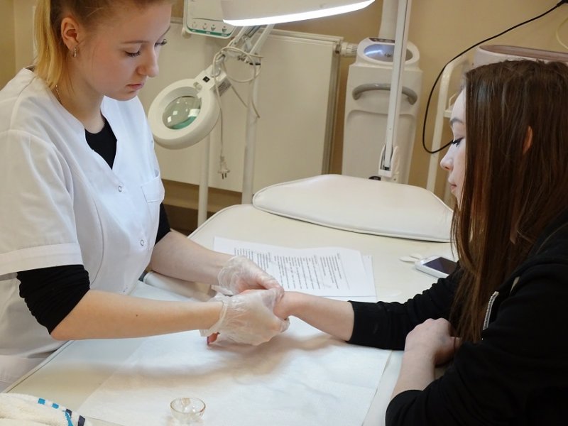 22.02.2016 r. w Samodzielnej Pracowni Kosmetologii uczennice VII LO w Białymstoku uczestniczyły w zajęciach praktycznej nauki zawodu. Mogły one skorzystać z zabiegów pielęgnacji dłonii, które były wykonywane przez studentki I roku kosmetologii .