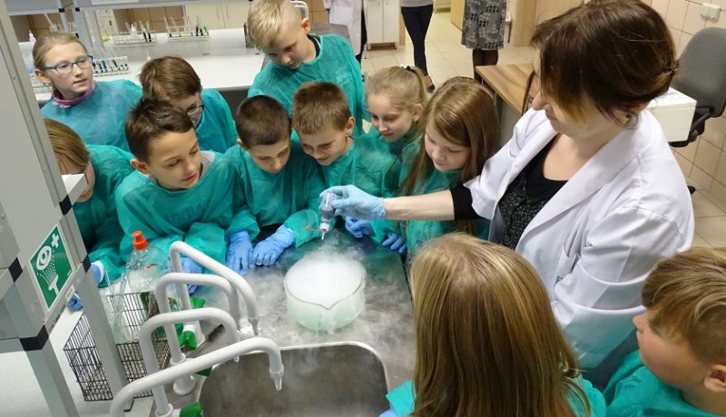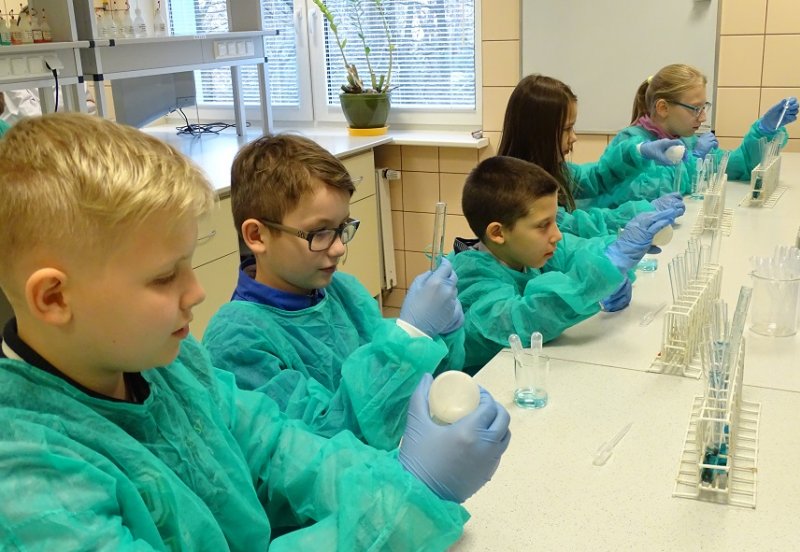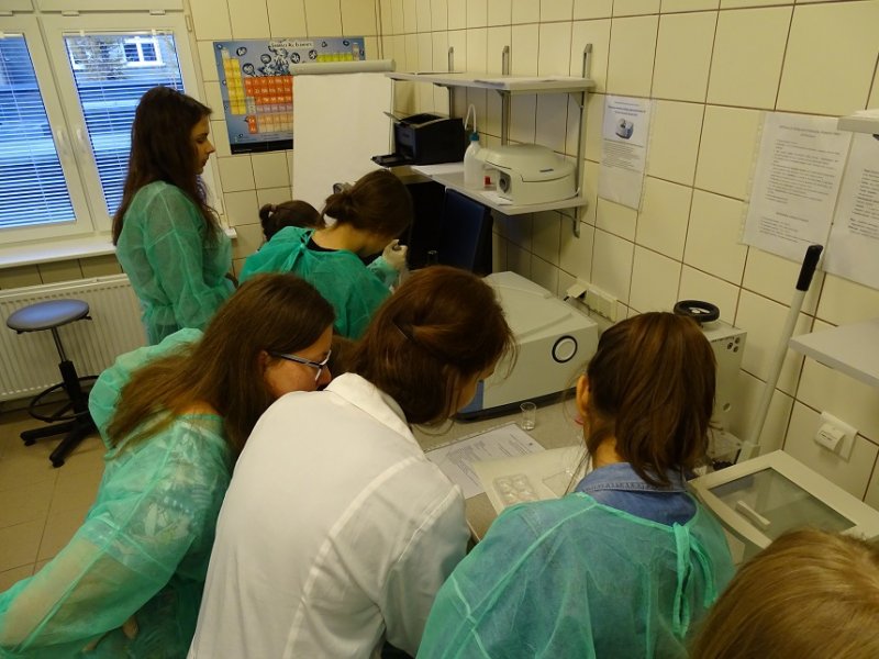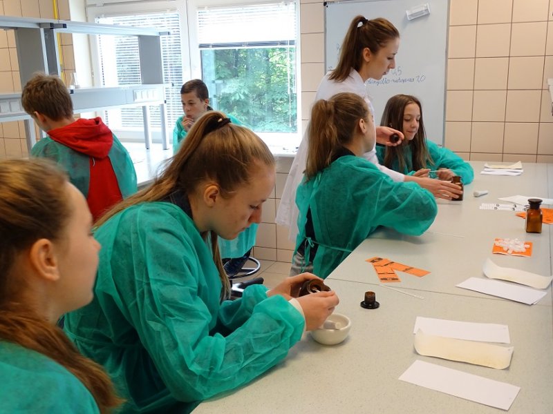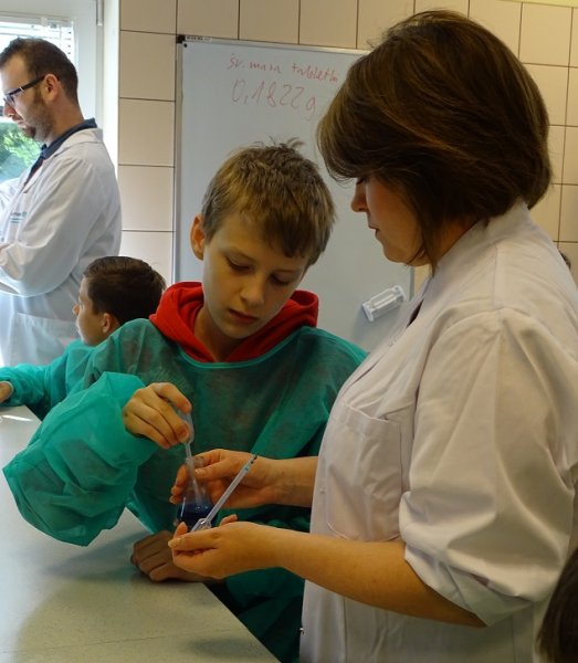 15.11.2016 r. uczniowie IV klasy Szkoły Podstawowej nr 50 z Oddziałami integracyjnymi im. Św,Jadwigi Królowej Polski poznawali tajniki farmacji jakie przekazywali im wykładowcy Zakładu Chemii Leków. Uczniowie z wielkim zaangażowaniem brali udział w eksperymentach a zadowolenie z przeprowadzanych doświdzceń mieli wypisane na usmiechnietych twarzach.