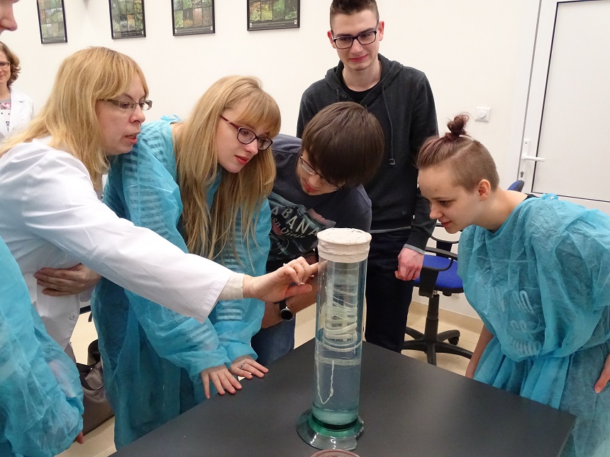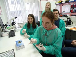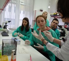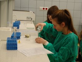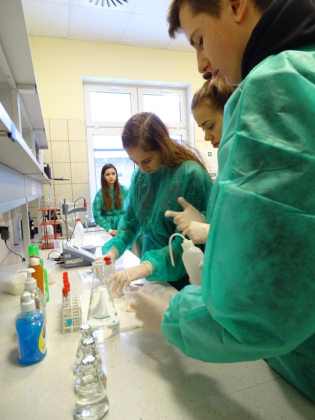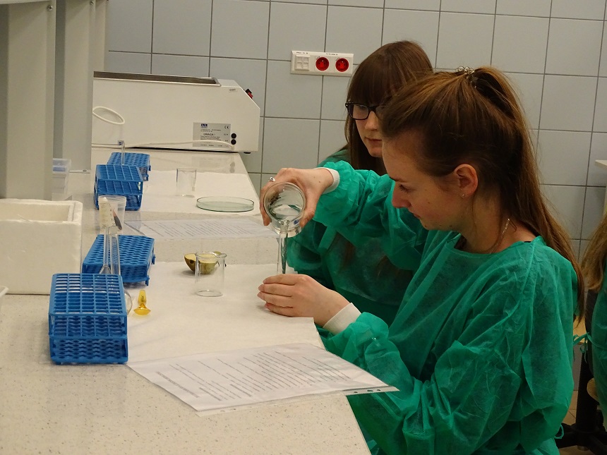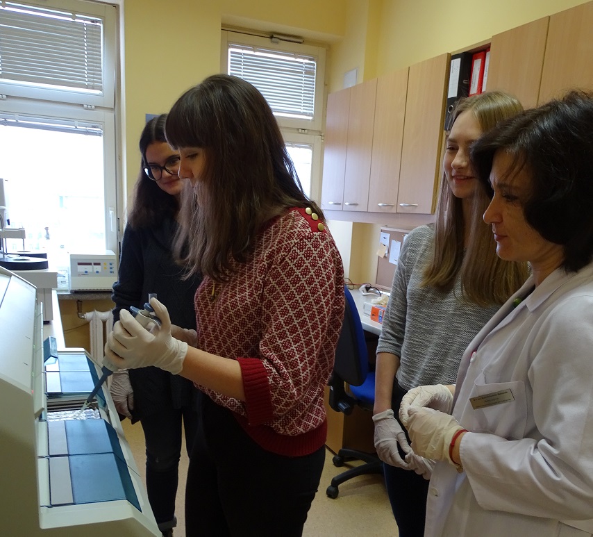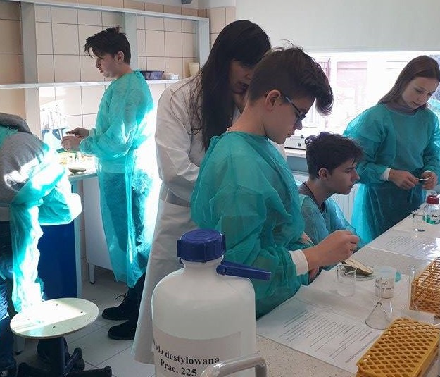W dniu 13 grudnia 2017 r. uczniowie z Publicznego  Gimnazjum Nr 8 w Białymstoku brali udział w warsztatach pt." Izolacja DNA z materiału biologicznego" prowadzonych przez Zakład Biochemii Farmaceutycznej. Młodzi naukowcy z dużym zaangażowaniem uczestniczyli w zajęciach. "