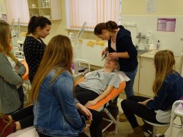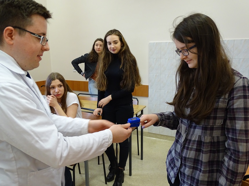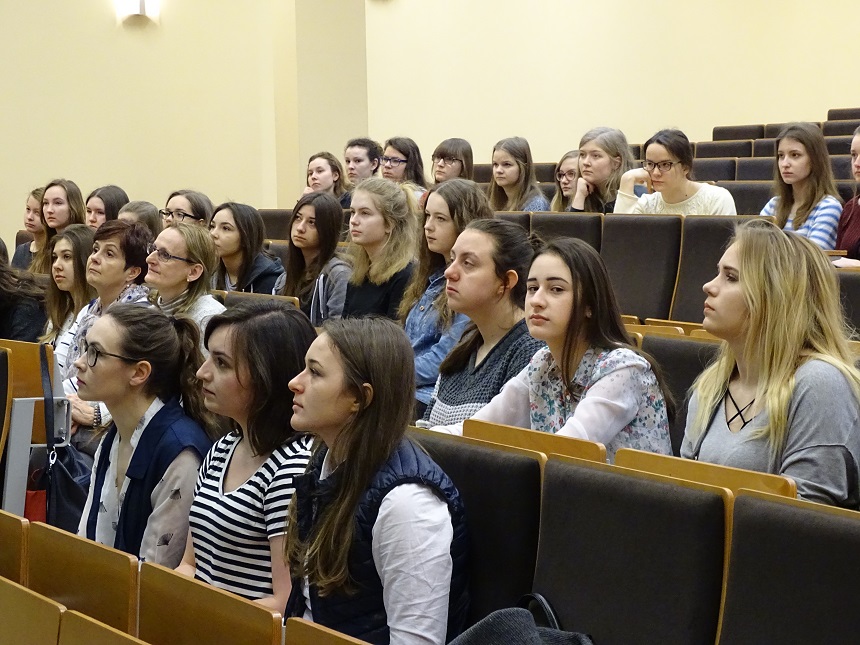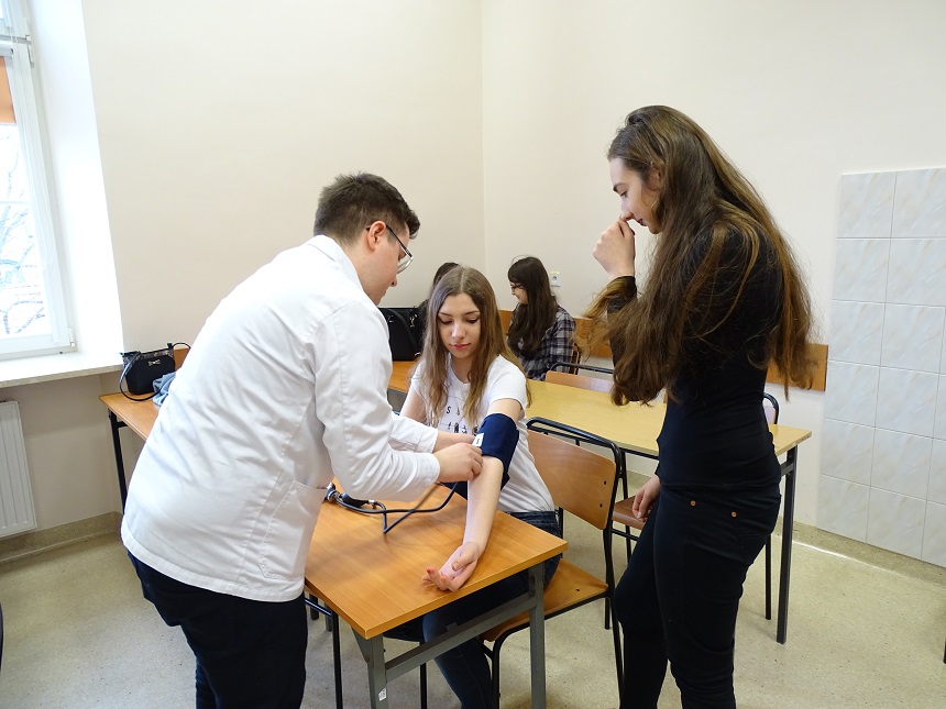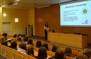Z  młodzieżą spotkały się się również studentki, przedstawicielki organizacji studenckich: Młodej Farmacji, Kreatywnego Diagnosty Laboratoryjnego, Innowacyjnego Kosmetologa.