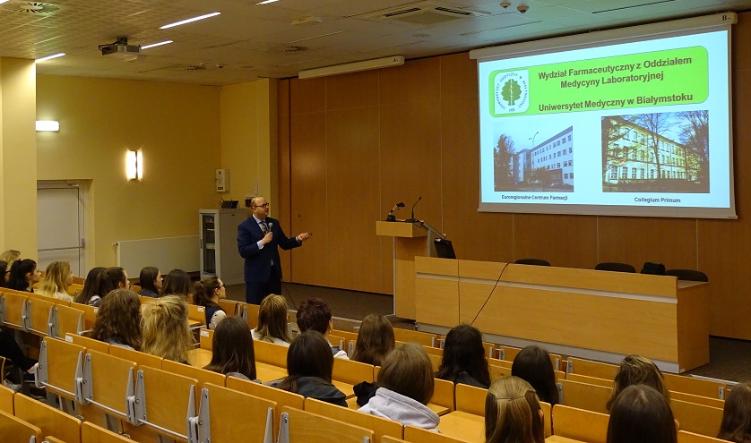Mogli oni poczuć się jak studenci kierunku Farmacja i Analityka Medyczna biorąc udział warsztatach naukowych prowadzonych przez pracowników: Zakładu Farmacji Stosowanej, Zakładu Toksykologii, Samodzielnej Pracowni Analizy Leków, Zakładu Diagnostyki Hematologicznej, Zakładu Diagnostyki Biochemicznej, Zakładu Laboratoryjnej Diagnostyki Klinicznej, Zakładu Laboratoryjnej Diagnostyki Pediatrycznej. Spotkanie z uczniami rozpoczął Prodziekan ds. Rozwoju dr hab. Michał Tomczyk.
