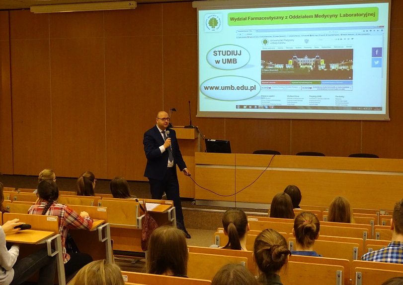 W dniu 25 listopada 2017 r.  na Wydziale Farmaceutycznym z Oddziałem Medycyny Laboratoryjnej uczniowie klas I biologiczno-chemicznych z I LO im.Adama Mickiewicza brali udział w kolejnej edycji akcji "Studiuj w UMB"