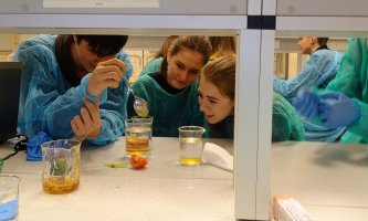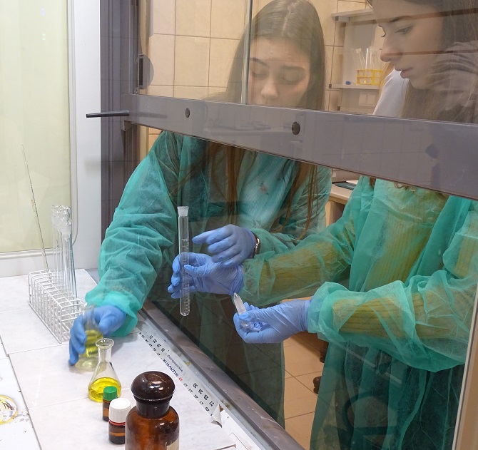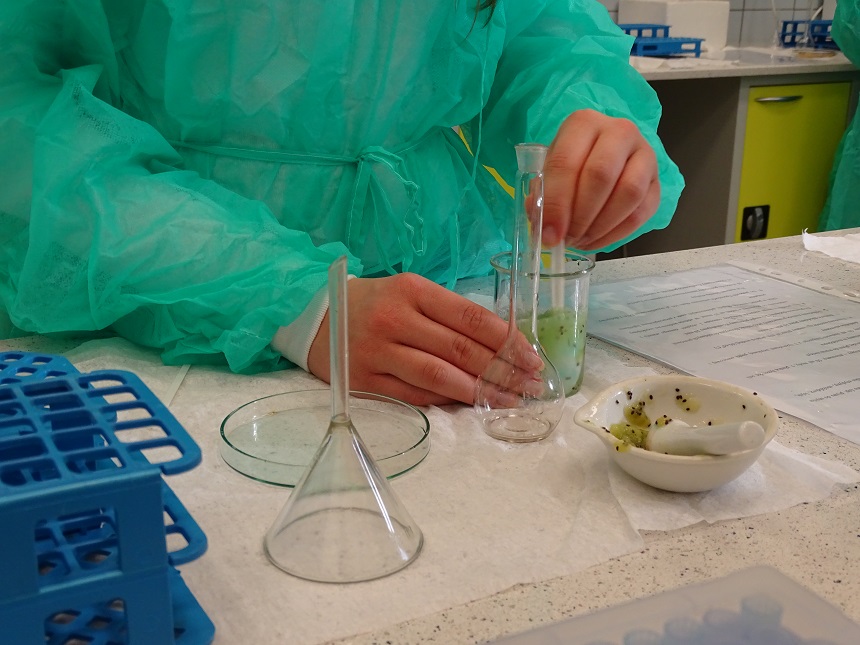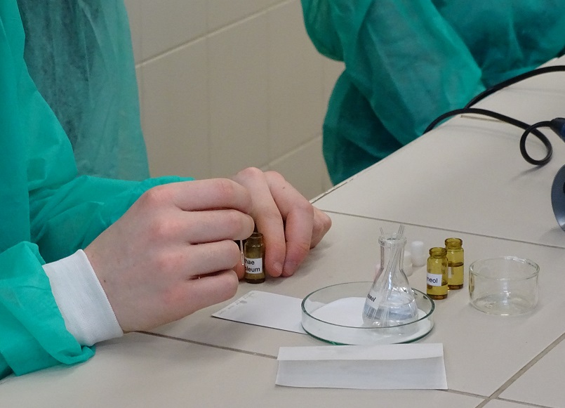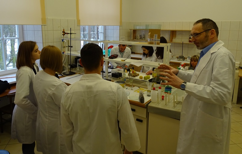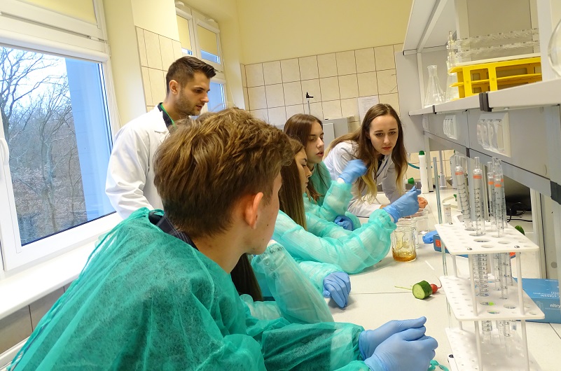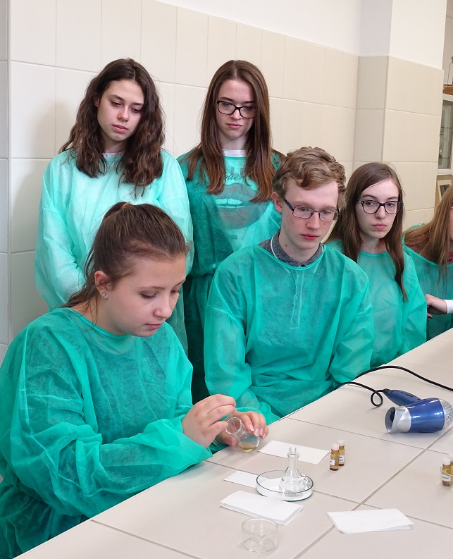 2. uczniowie z III Liceum Ogólnokształcącego w Białymstoku na warsztatach naukowych "Pachnące Laboratorium" w Zakładzie Farmakognozji.