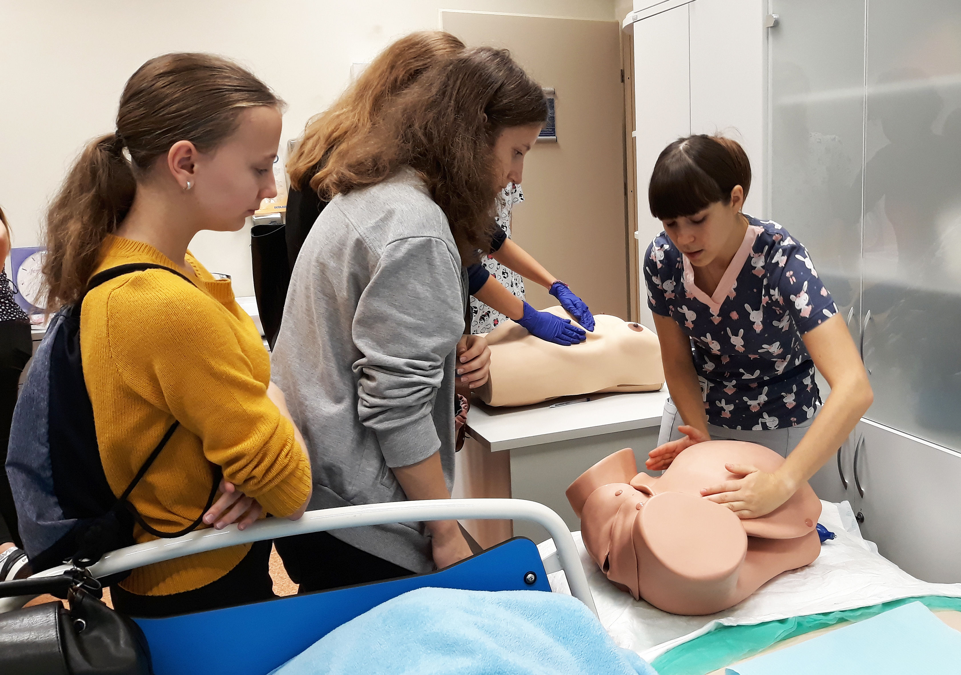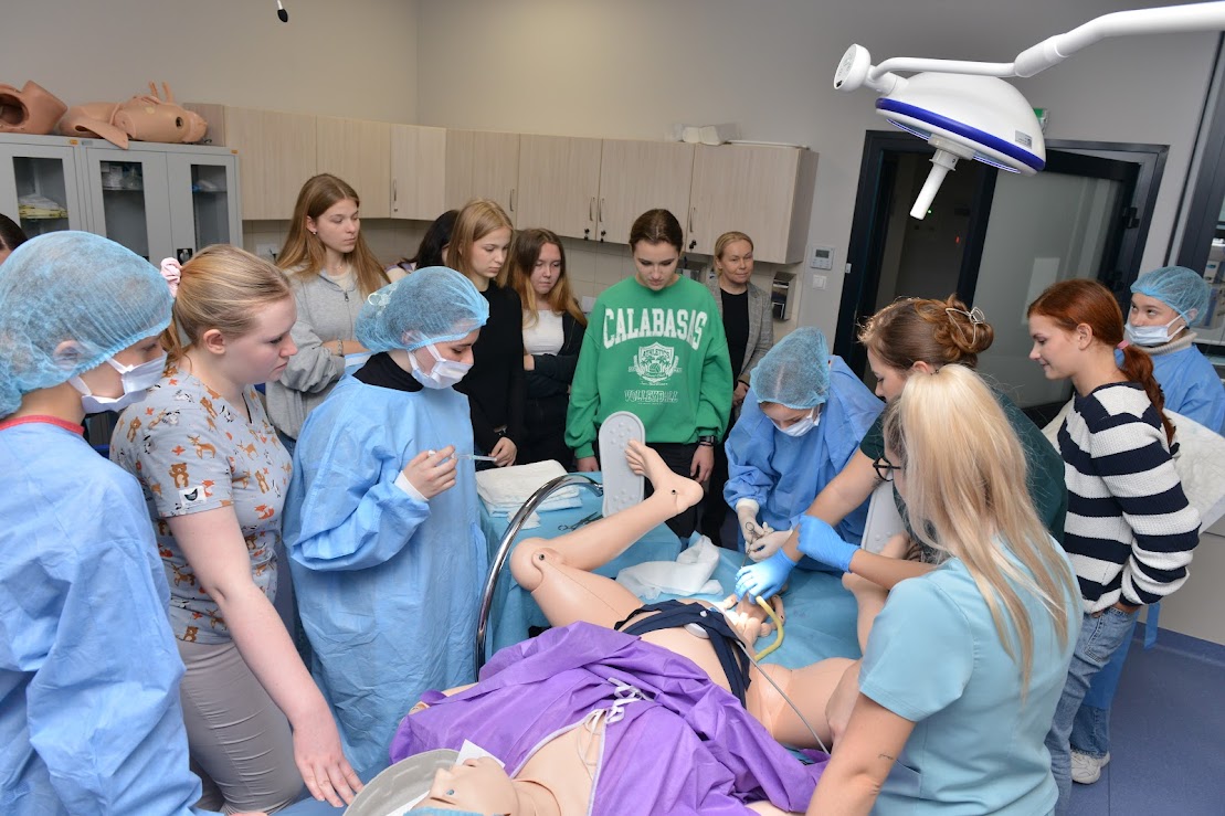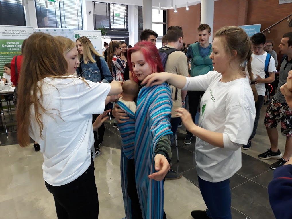 W sobotnie przedpołudnie zawitali na kierunku położnictwo licealiści, aby zobaczyć czym na co dzień zajmują się położne. Studentki drugiego i trzeciego roku zainicjowały poród, wytłumaczyły i pokazały jak wygląda procedura pobierania cytologii, samobadanie piersi, chwyty Leopolda oraz zabiegi okołoporodowe przy noworodku